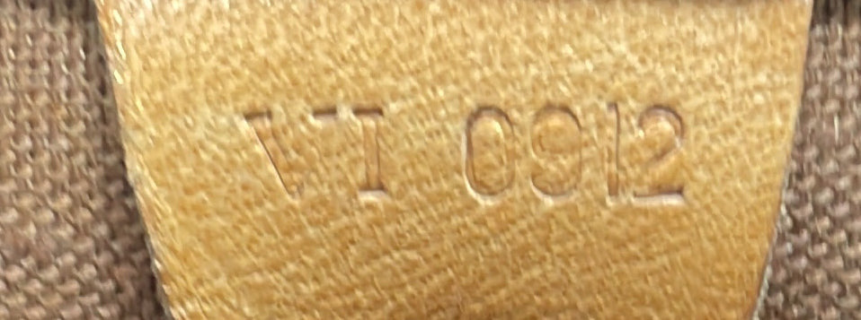 Condition: Good. Exterior: peeling on canvas, scuffs, creases, discoloration, corner wear. Handles/Straps: creases, discoloration, scuffs. Interior: perfume odor, stains. Hardware: scratches, minor tarnished