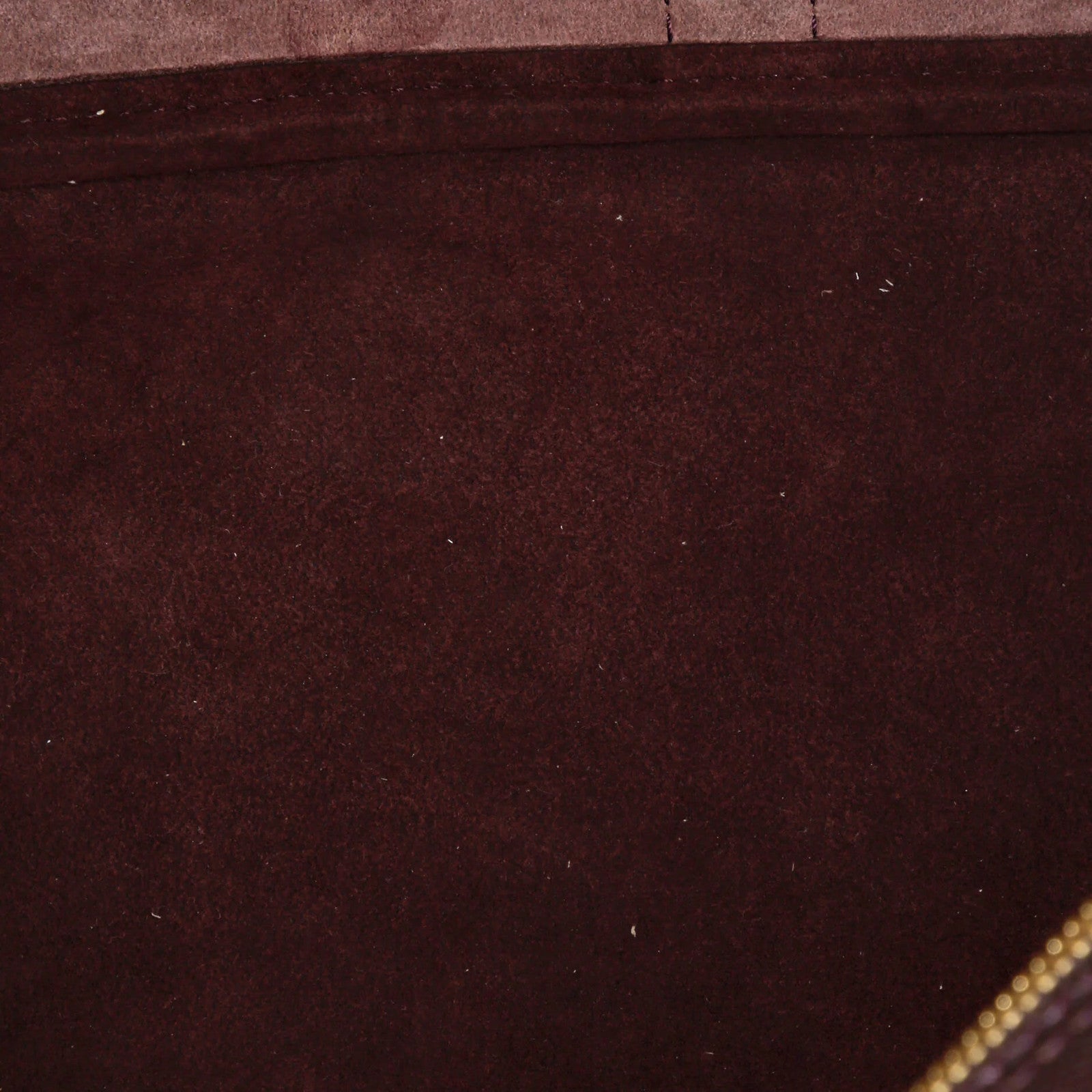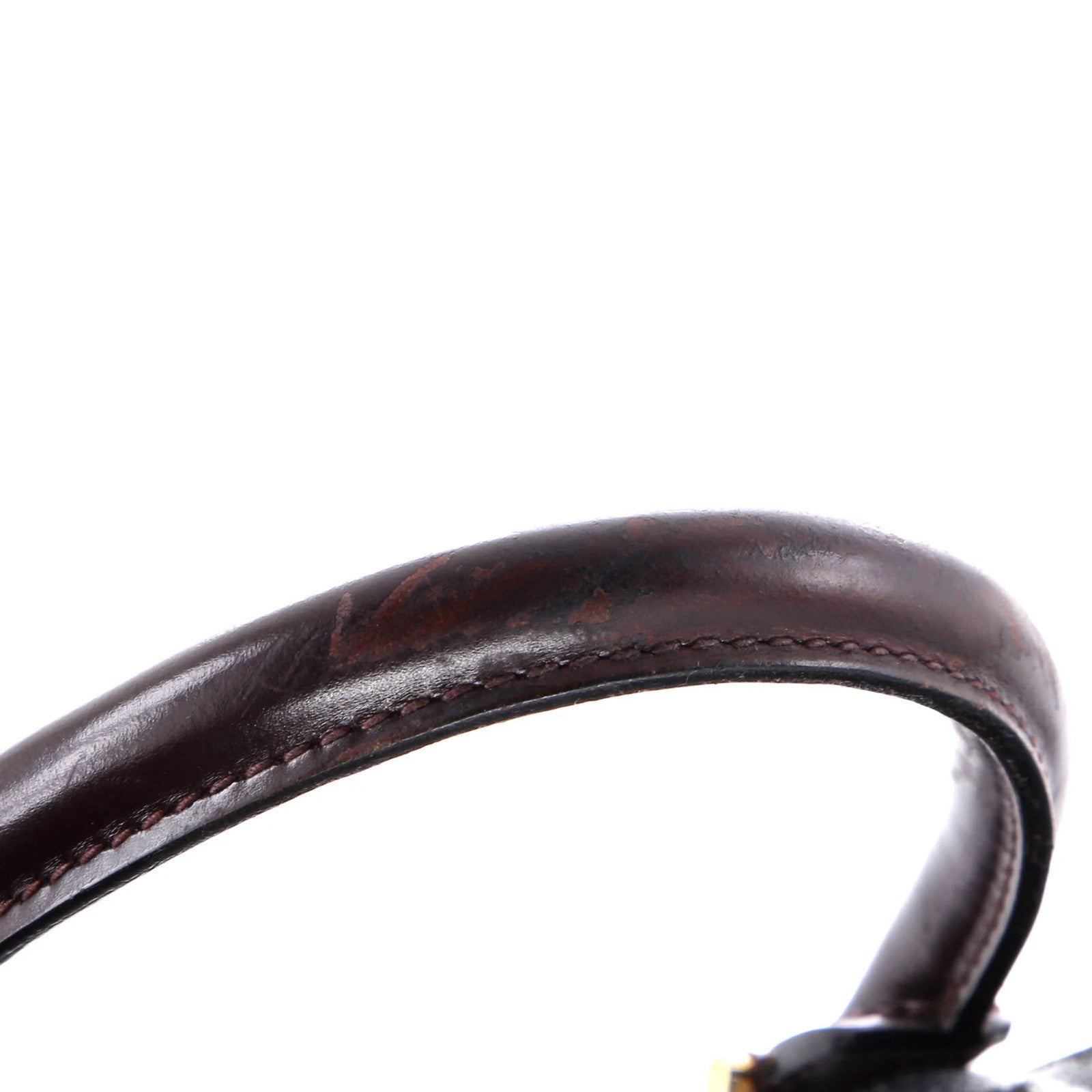 Condition: Fair. Exterior: heavy scuffs throughout, corner wear, minor creases, minor edge wear. Handles/Straps: heavy scuffs, heavy discoloration, minor cracking. Interior: heavy scuffs, heavy discoloration, stains. Hardware: scratches, tarnished