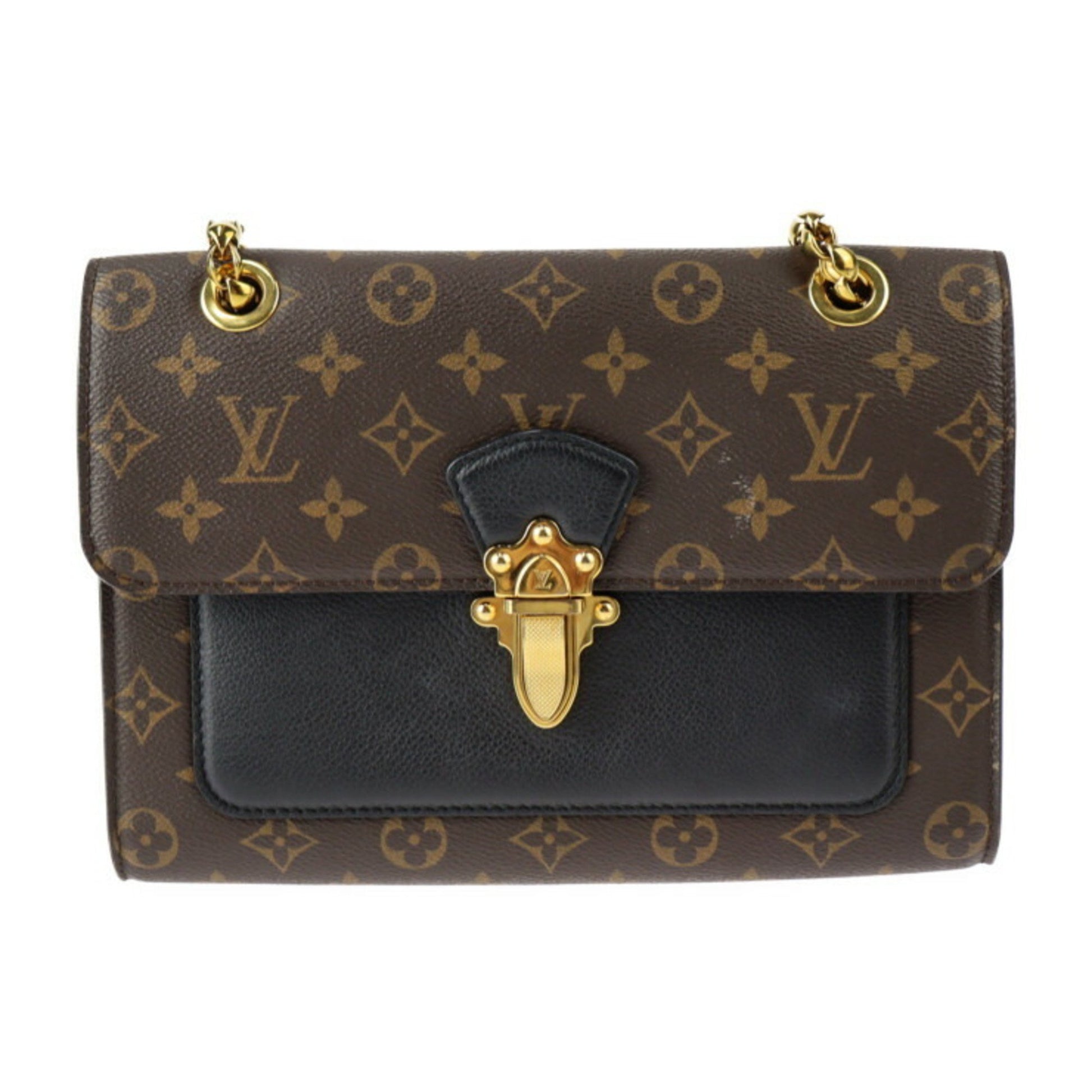 Louis Vuitton Louis Vuitton Victoire Shoulder Bag M41730 Monogram Canvas Calfskin Brown Black Gold