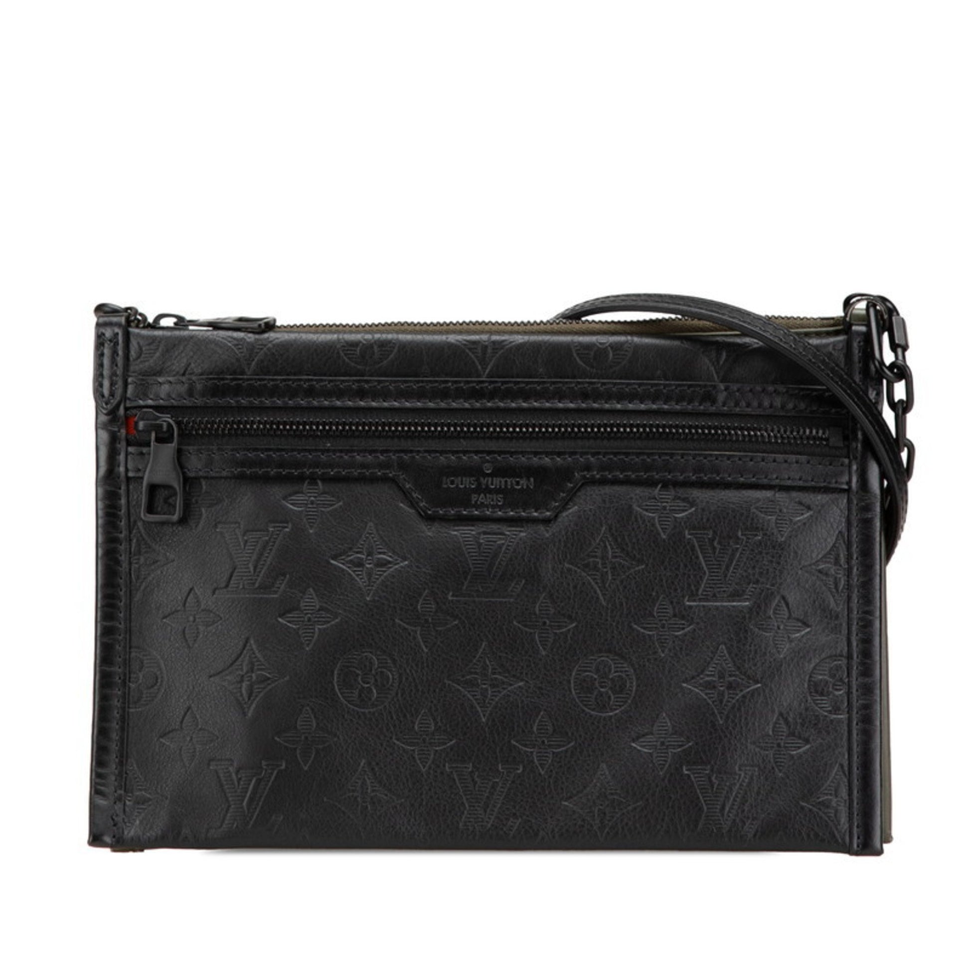 Louis Vuitton Monogram Shadow Flat Messenger Pouch Clutch/Shoulder Bag M44635 Black/Khaki Leather