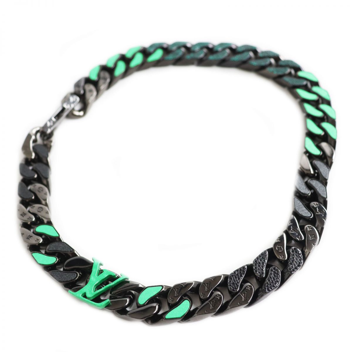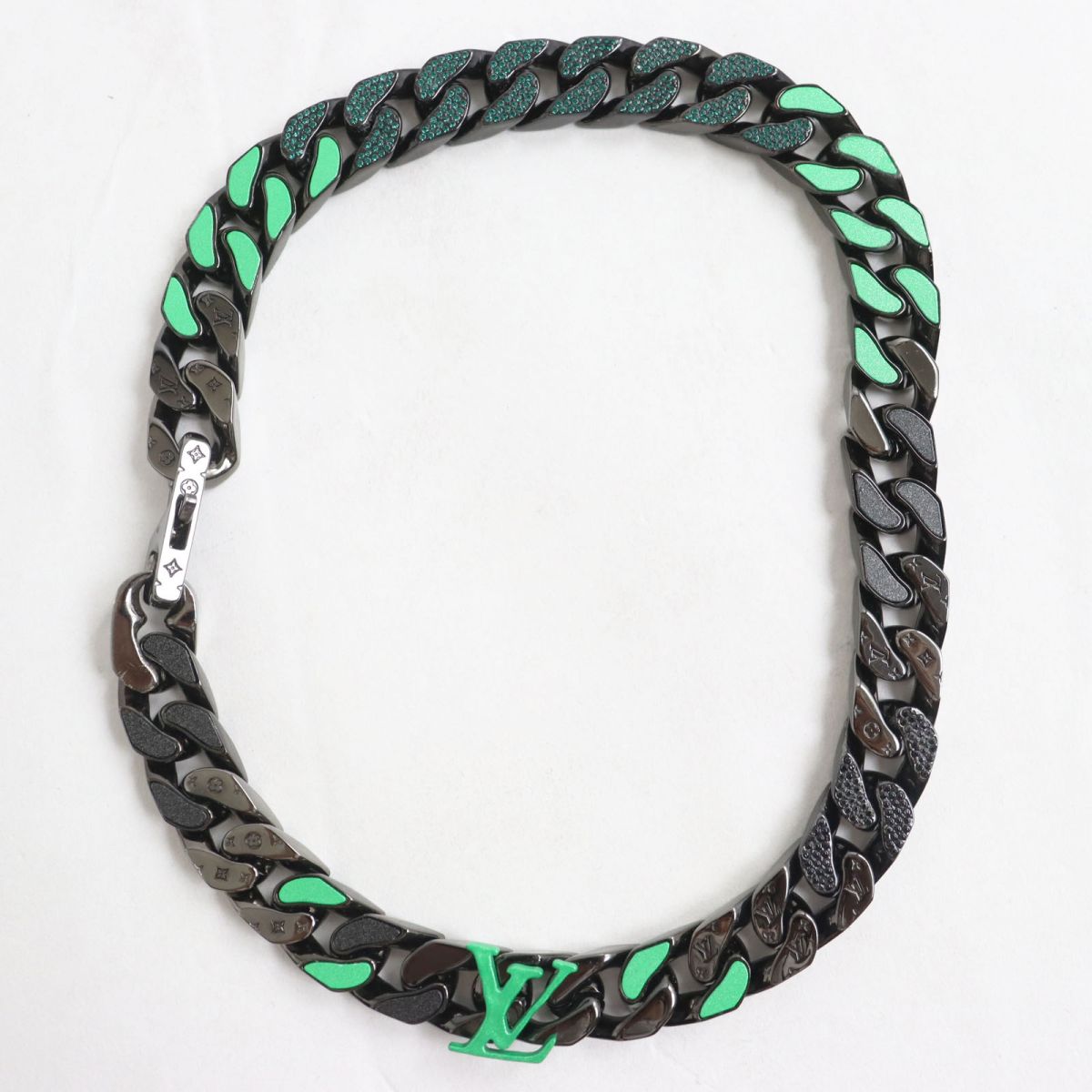 Louis Vuitton Necklace Mp2853 Gold Plated, Color Stone Black X Silver Mens