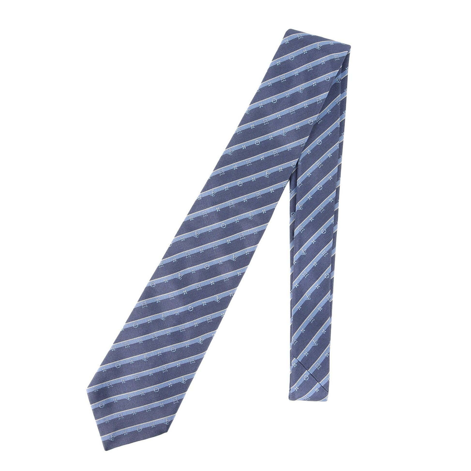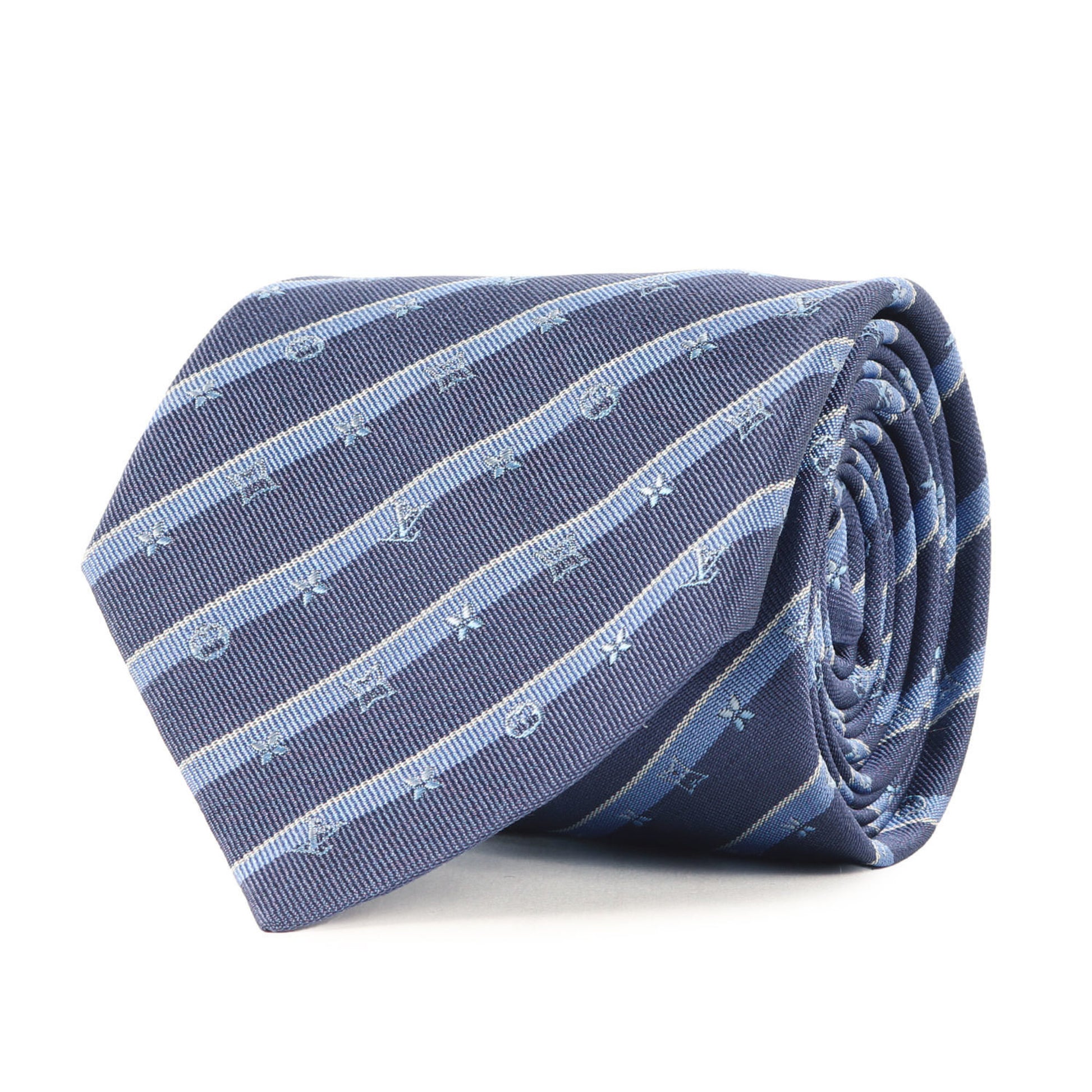 Louis Vuitton Regimental Monogram Silk Cravate Tie M71720 Blue