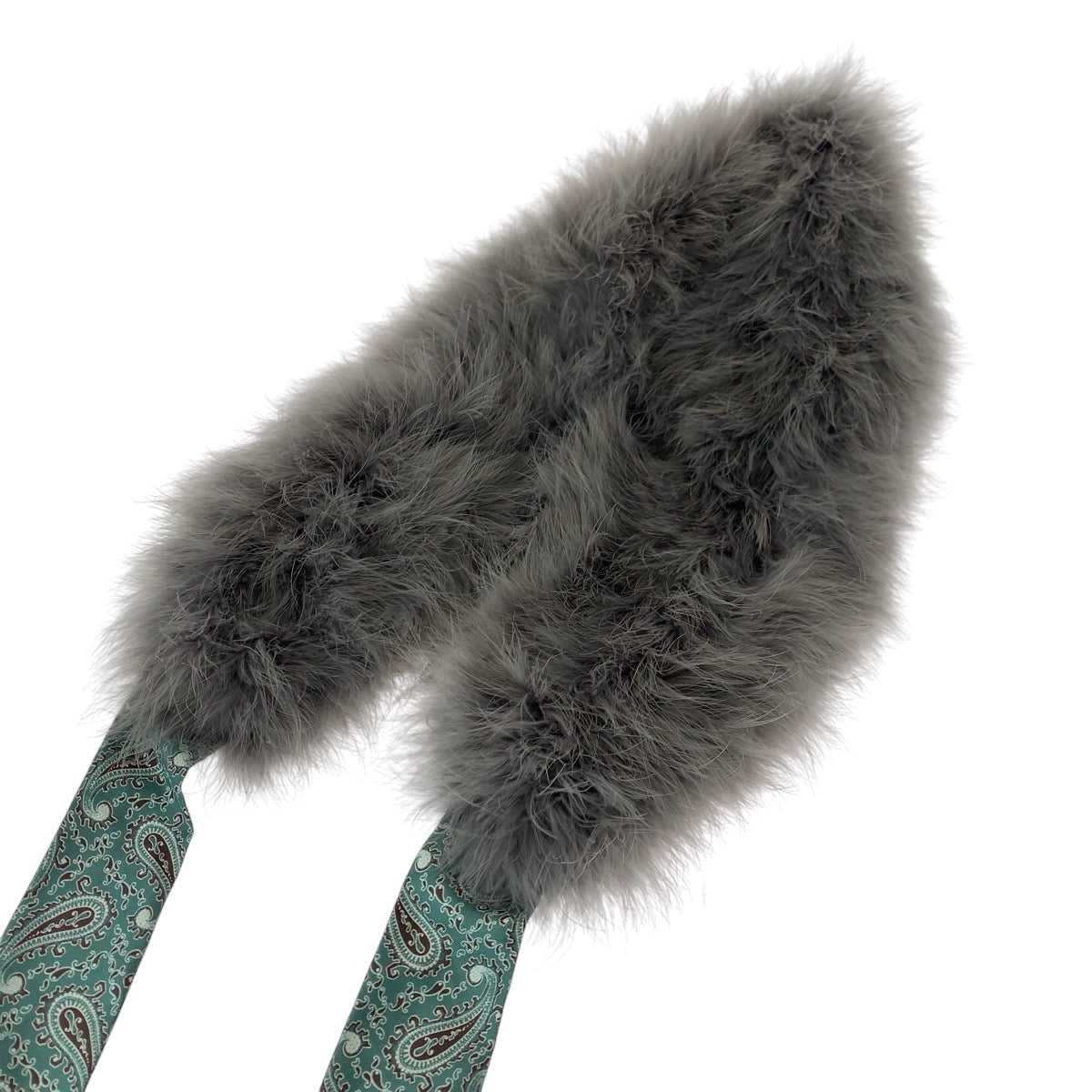 Louis Vuitton Scarf Mp1258 Fur, Silk Gray Green Scarf Stole Tippet Paisley Pattern Women