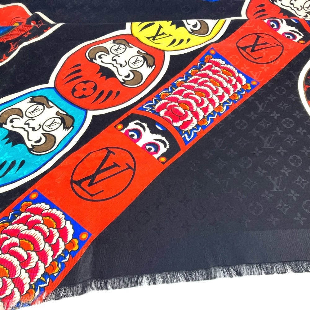 Louis Vuitton Shawl Mp1944 Silk, Wool Black Kabuki Yamamoto Hirosai Shawl Monogram Kabuki Sticker