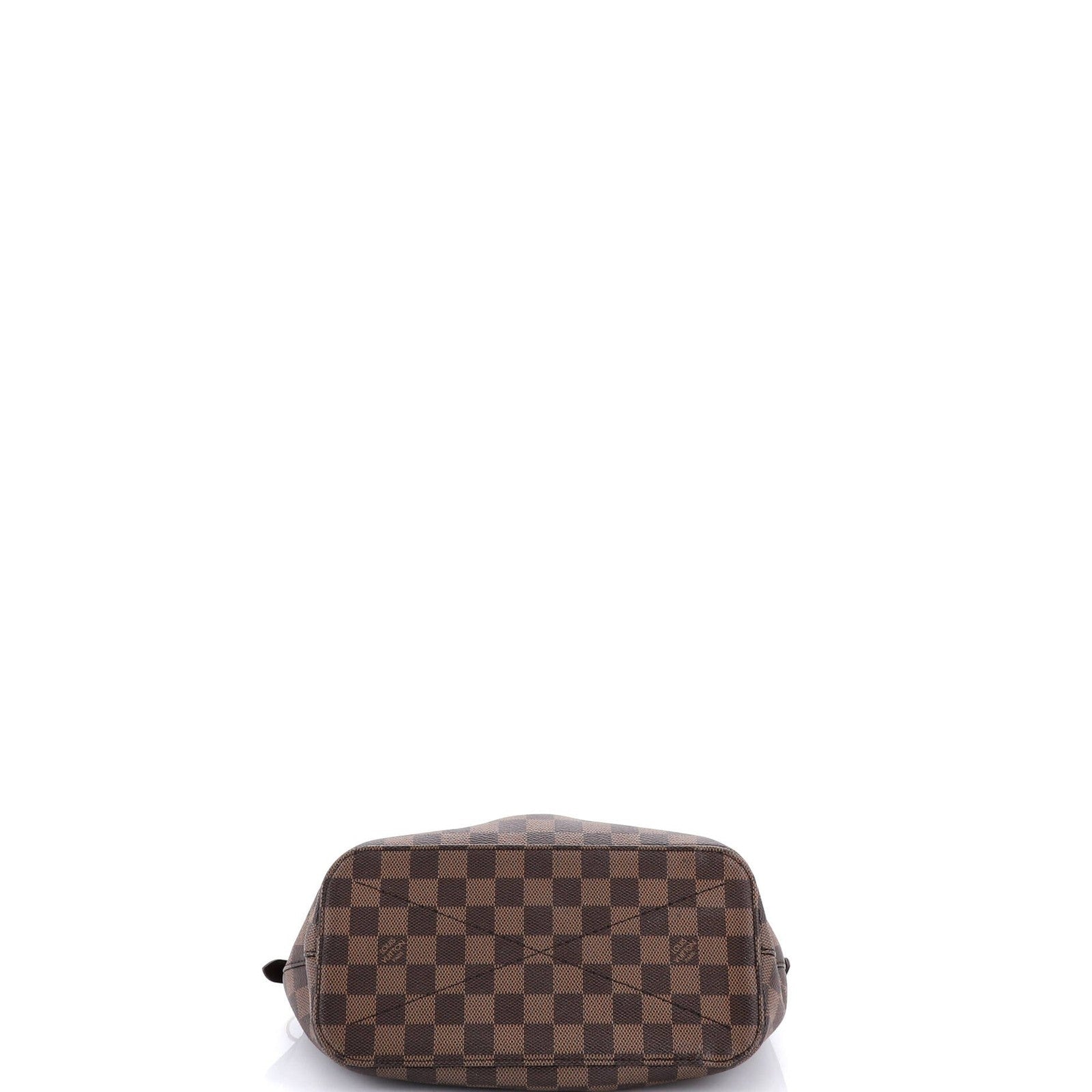 Condition: Good. Exterior: edge wear, scuffs, creases. Handles/Straps: scuffs, discoloration. Interior: moderate odor, discoloration, scuffs. Hardware: scratches, tarnished