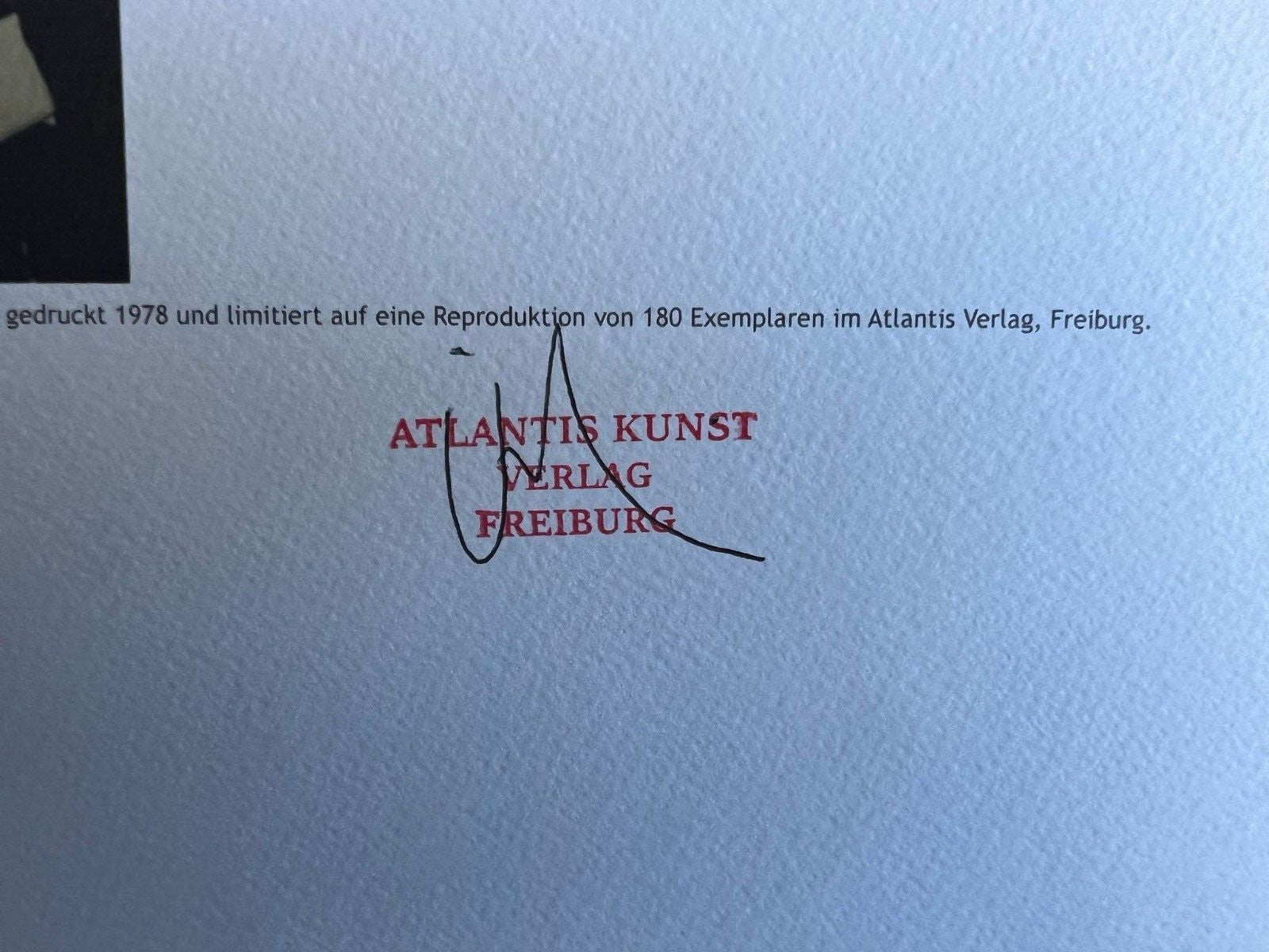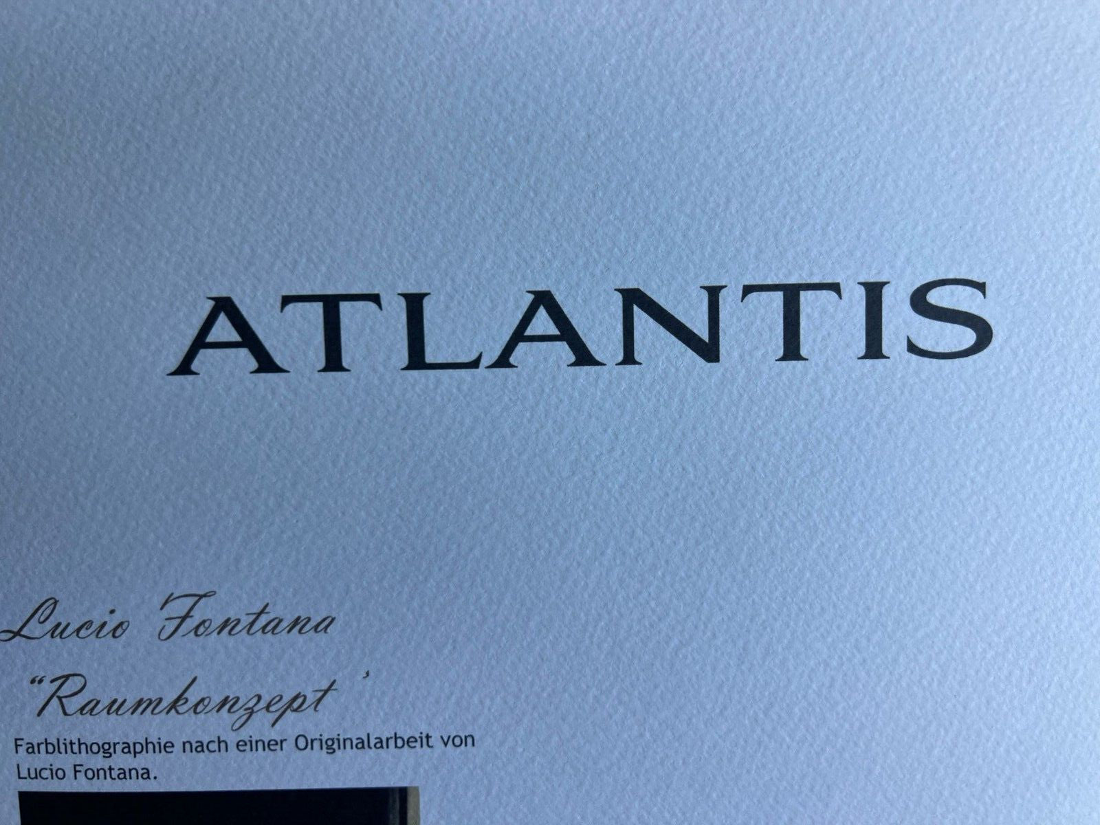 Lucio FONTANA Lithograph 1978 - COA Signed In Pen (Hand Numbered) Lucio FONTANA " Spatial concept " Chromolithography printed in 1978 In 180 specimens from Atlantis Verlag, Freiburg 24 x 49 cm Signature Lucio FONTANA on the COA slab signed in Penna Dry and authentic stamp of the publishing house Atlantis Kunst Verlag Freiburg Lucio FONTANA "Spatial concept" Chromolithography printed in 1978In 180 specimens from Atlantis Verlag, Freiburg 24 x 49 cm Signature Lucio FONTANA on the COA slab signed in Penna Dry and authentic stamp of the publishing house Atlantis Kunst Verlag Freiburg