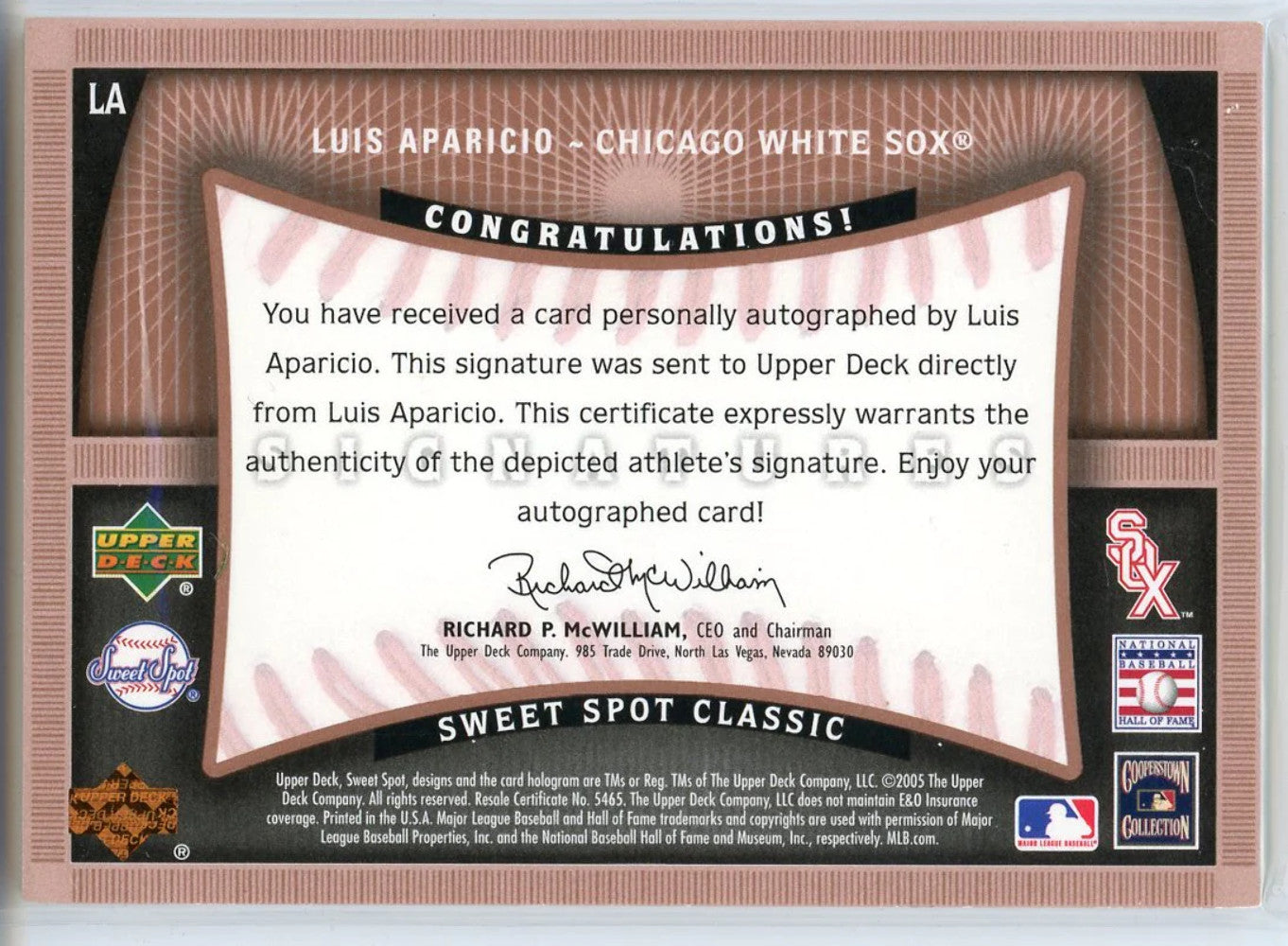 Luis Aparicio Autographed 2005 Upper Deck Sweet Spot Classic Signatures Card #La