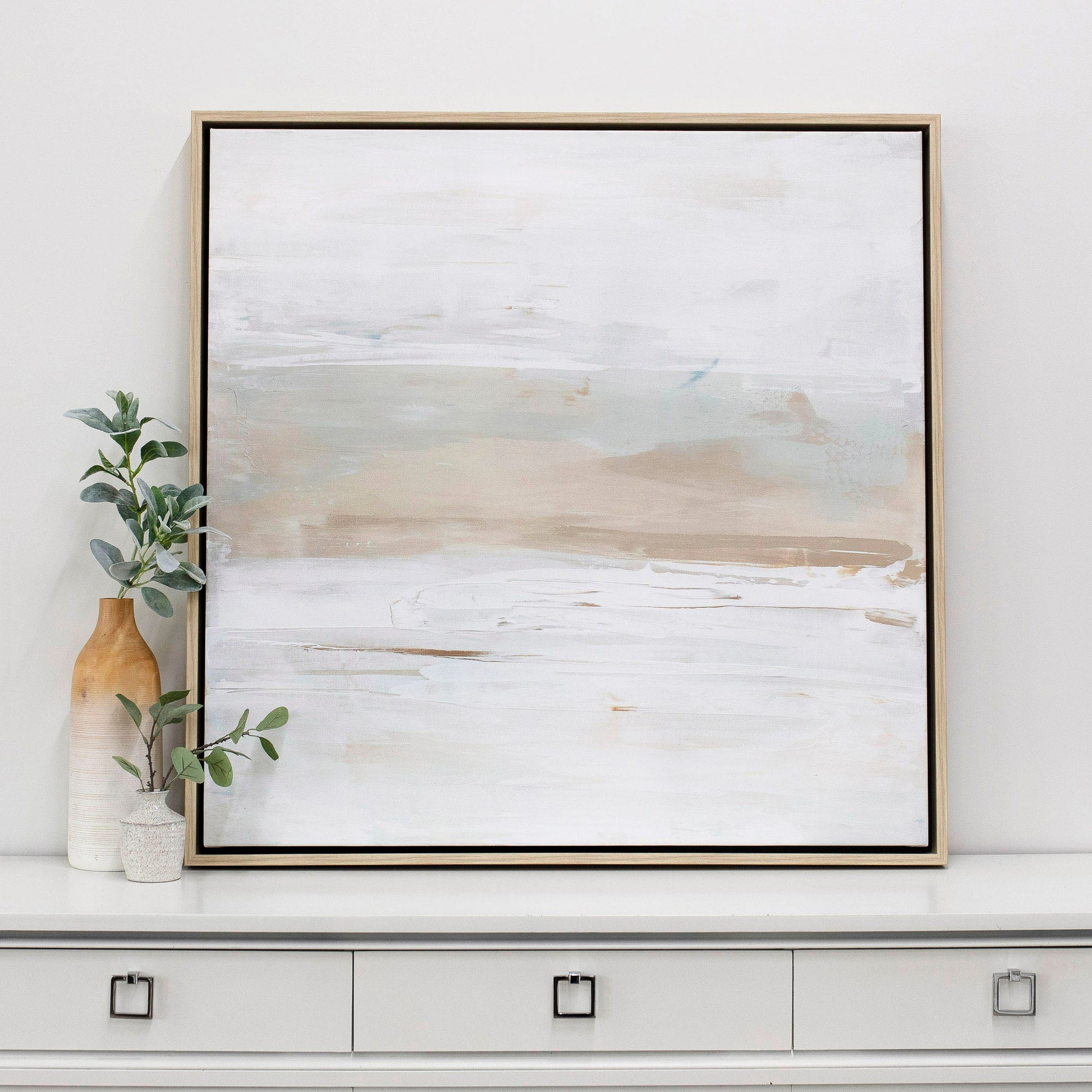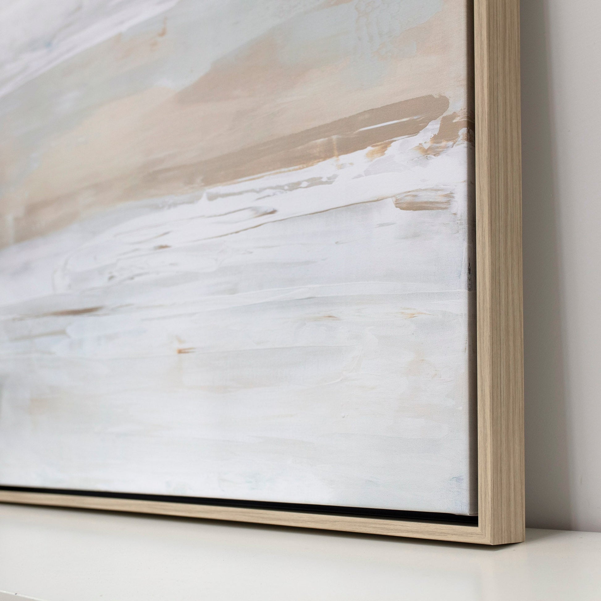 This fine art print is created on archival-grade matte canvas. Gallery wrapped and finished in our white oak floater frame. Comes ready to hang.