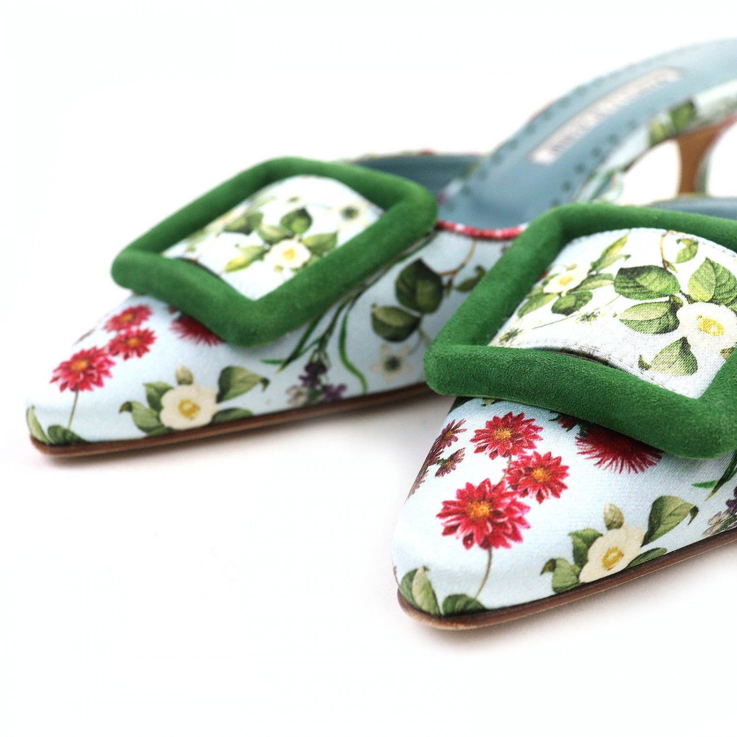 Manolo Blahnik Mule Satin Light Blue Green Maysalebi Maysale 37