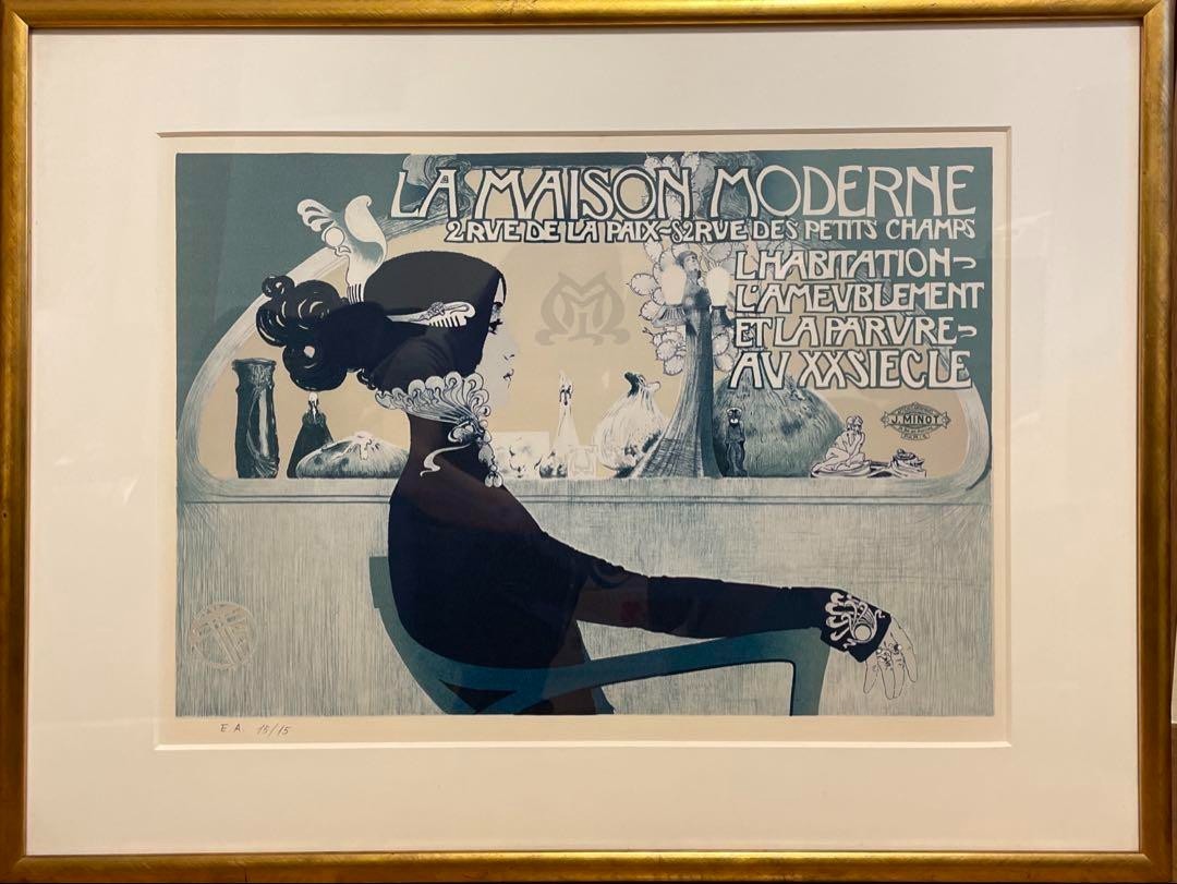 Manuel Orazi "La Maison Moderne" Blue Lady 1989 Lithograph Ea 15/15 Art Nouveau