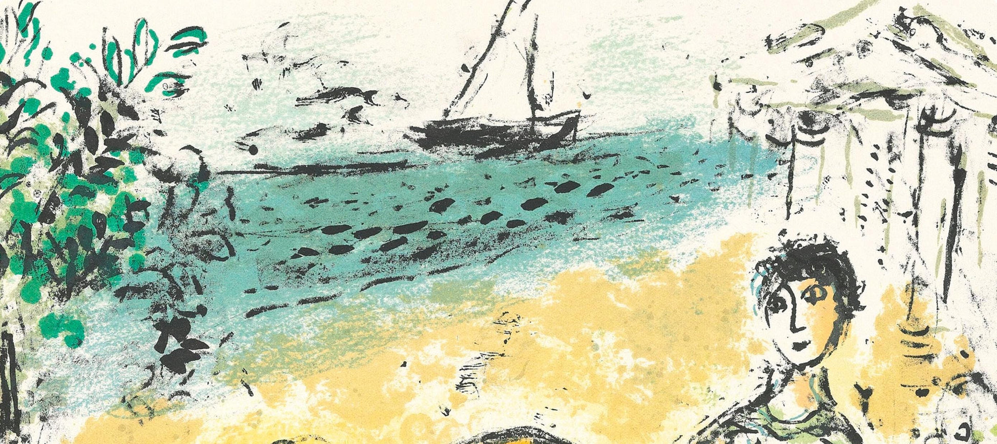 Notes: From the album, Homer, Die Odyssee, Von Vava Chagall, autorisierte deutsche Ausgabe in 2 Bnden mit, 43 Farbreproduktionen und den 39 einfarbigen Wiedergaben der Original-Lithographien von Marc Chagall, 1989.