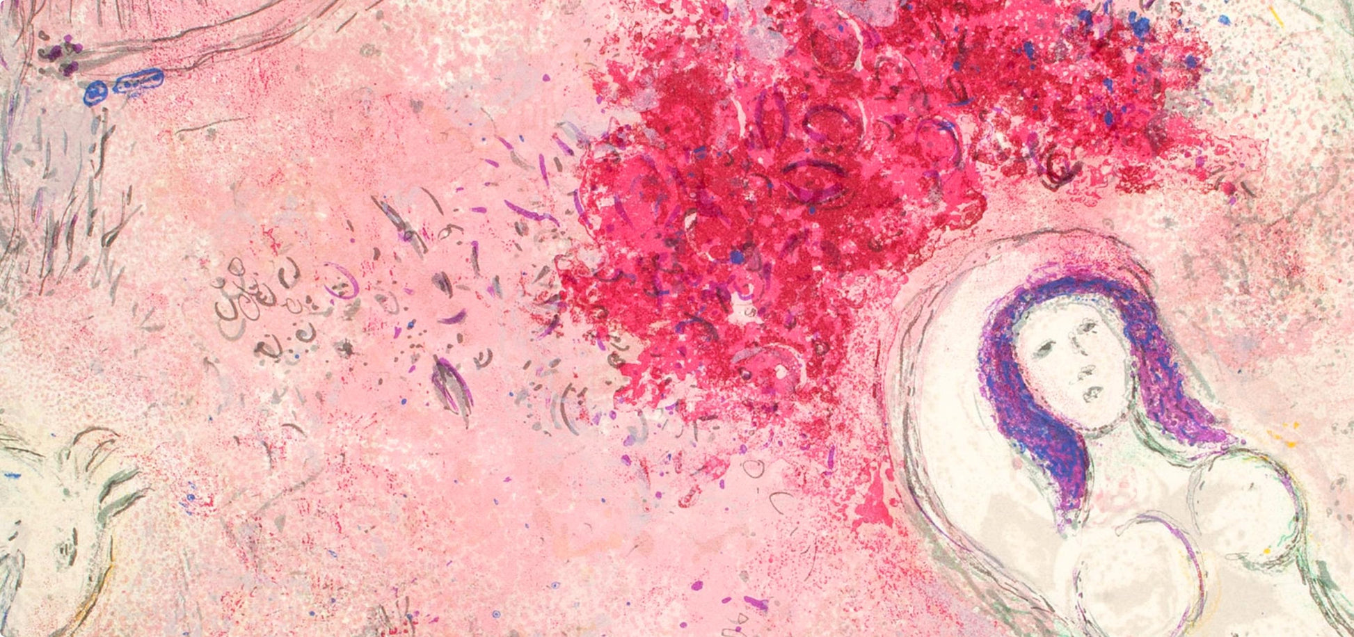Beginning with a pastoral story of young love, Chagall produced fifty-eight original color lithograph pages for a limited edition published in 1961 that has since become priceless.