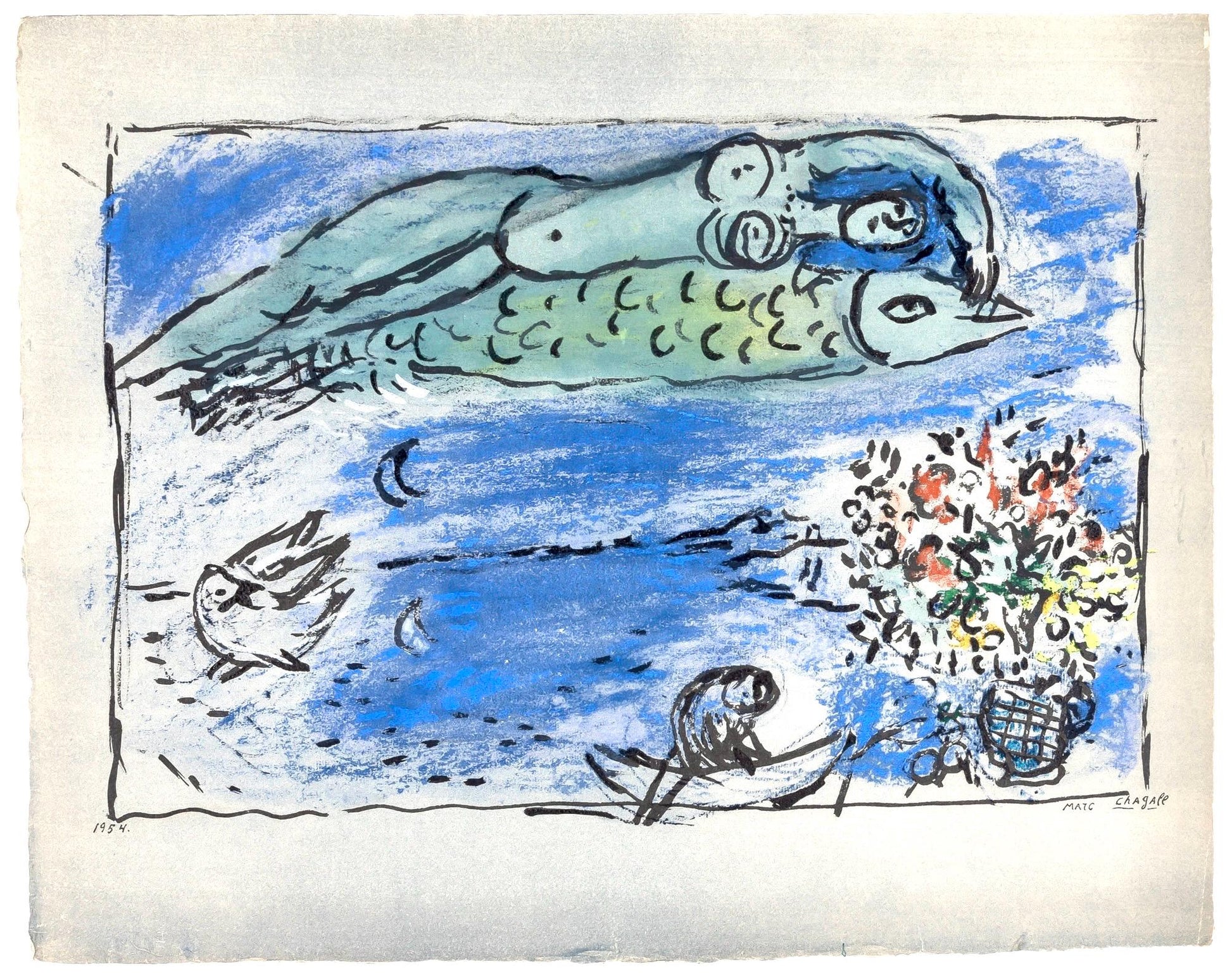 MARC CHAGALL (1897-1985) Russian-Jewish painter is recognized as one of the most significant painters and graphic artists of his time. Chagall painted in a style all his own, combining elements of Expressionism, Symbolism, Cubism and, to a lesser degree, other Modernist art movements. His works combine recollection with folklore and fantasy. A prolific and multi-faceted artist, Chagall left behind him thousands of works in many different techniques and media that have established him as one of the foremost artists of the 20th Century.