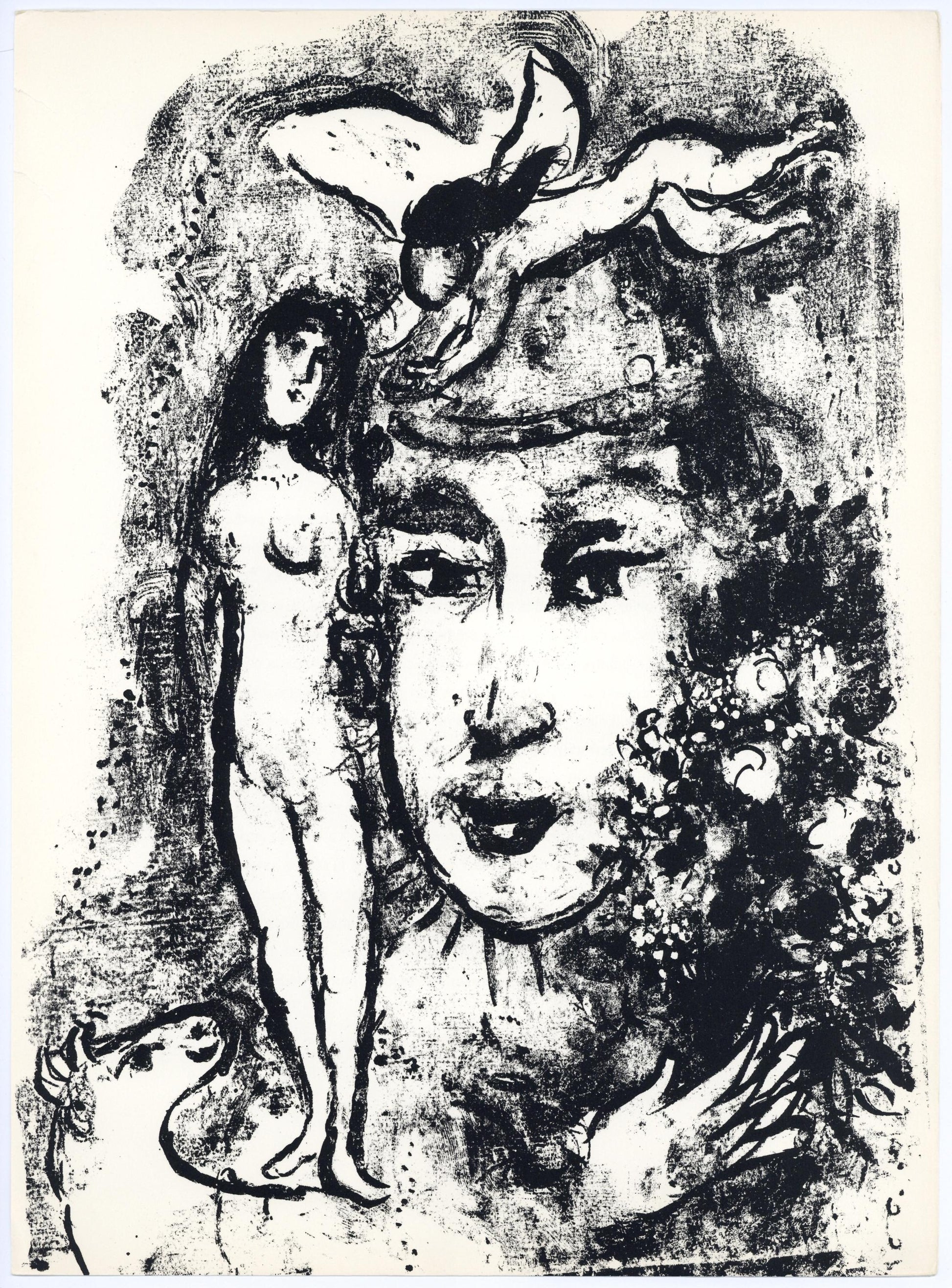 Lithograph on vlin paper. Paper Size: 15 x 11 inches. Excellent condition. Inscription: Unsigned and unnumbered, as issued. Notes: From Derrire le miroir, N 147, 1964. Published by Aim Maeght, diteur, Paris; printed by ditions Pierre Feu, Galerie Maeght, Paris. Excerpted from the volume (translated from French), Marc Chagall executed for this issue of "Behind the Mirror, three original lithographs that were printed by Mourlot Frres. This issue has a luxury edition pri......