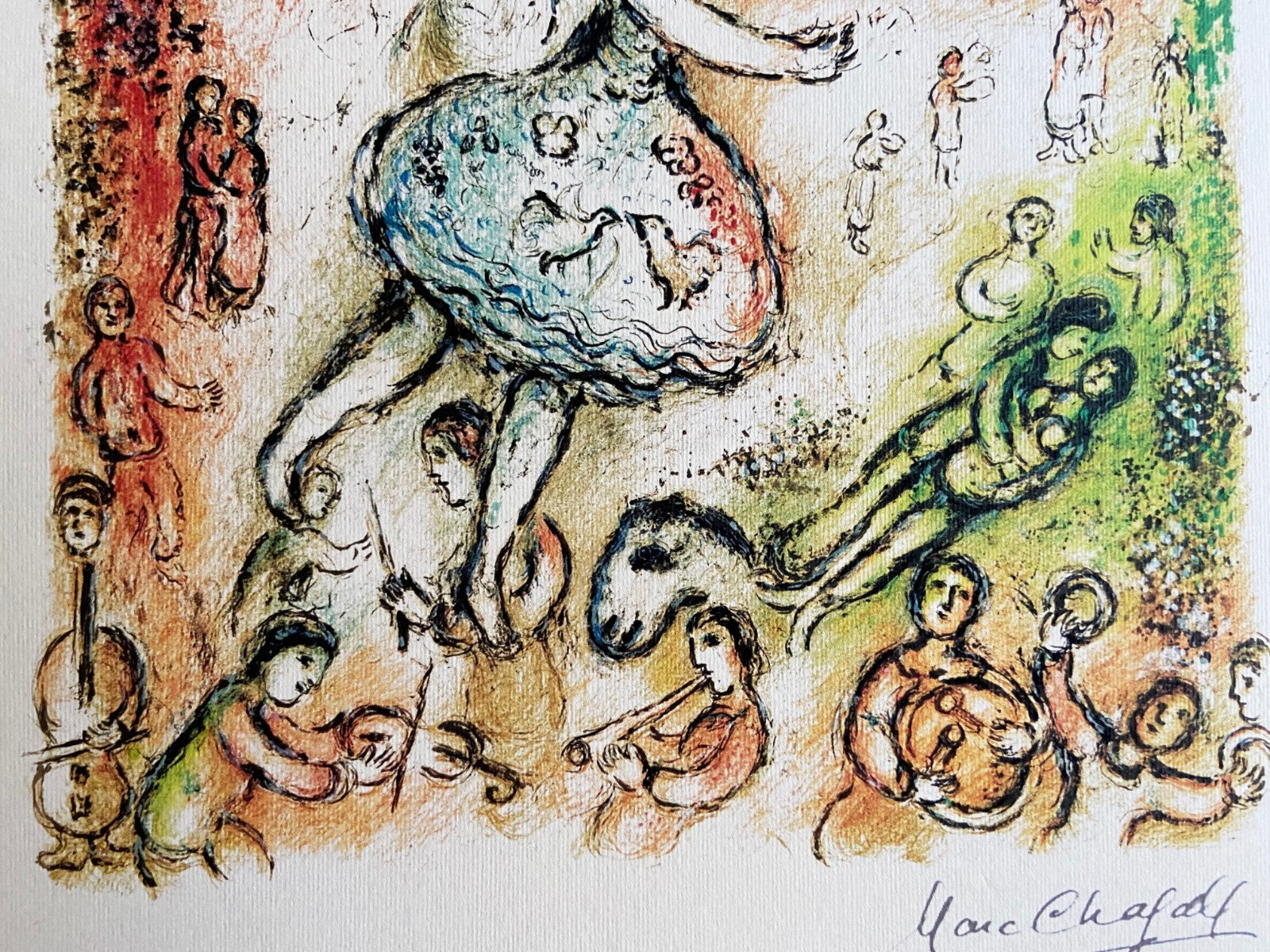 Marc Chagall Lithograph Mourlot Coa Signed Op 1974 Collection