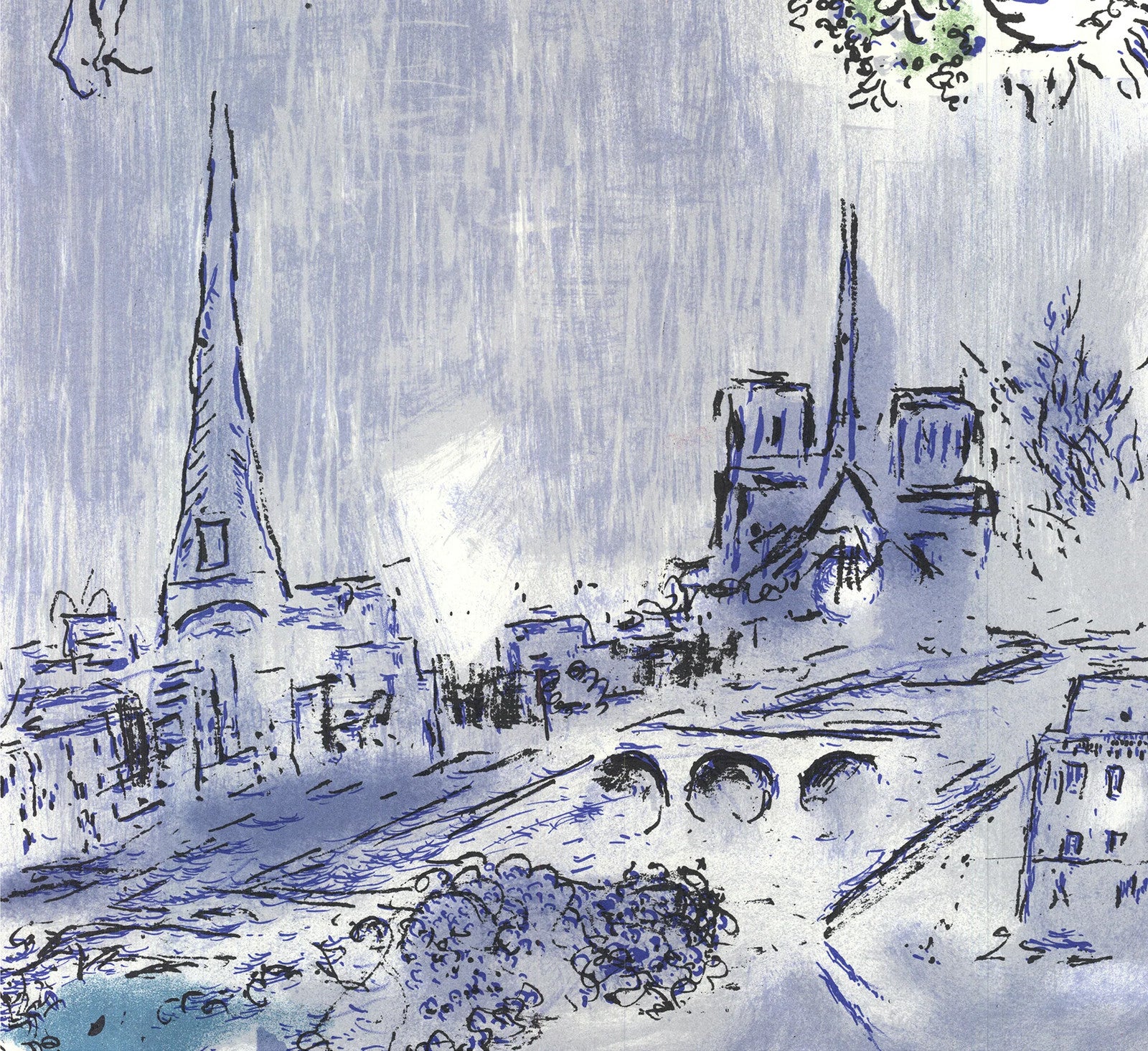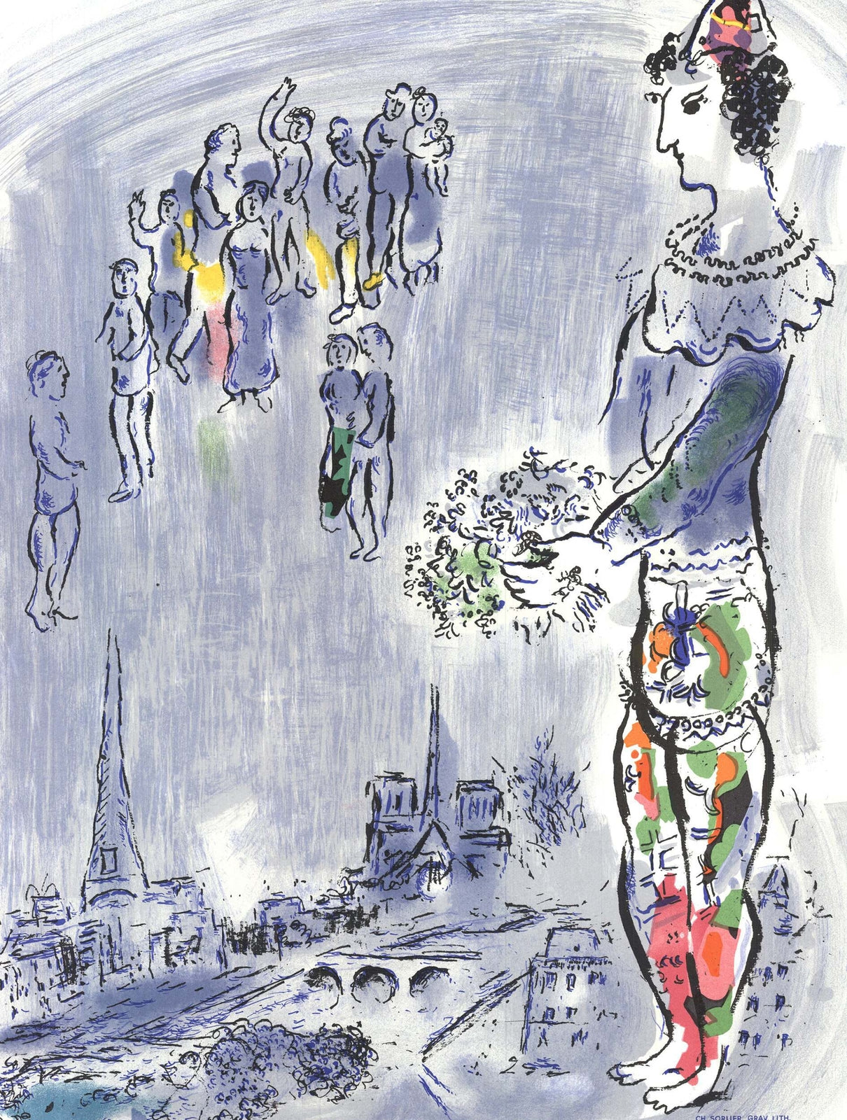 Marc Chagall The Magician Of Paris " Lithograph Modernism Blue, Gra