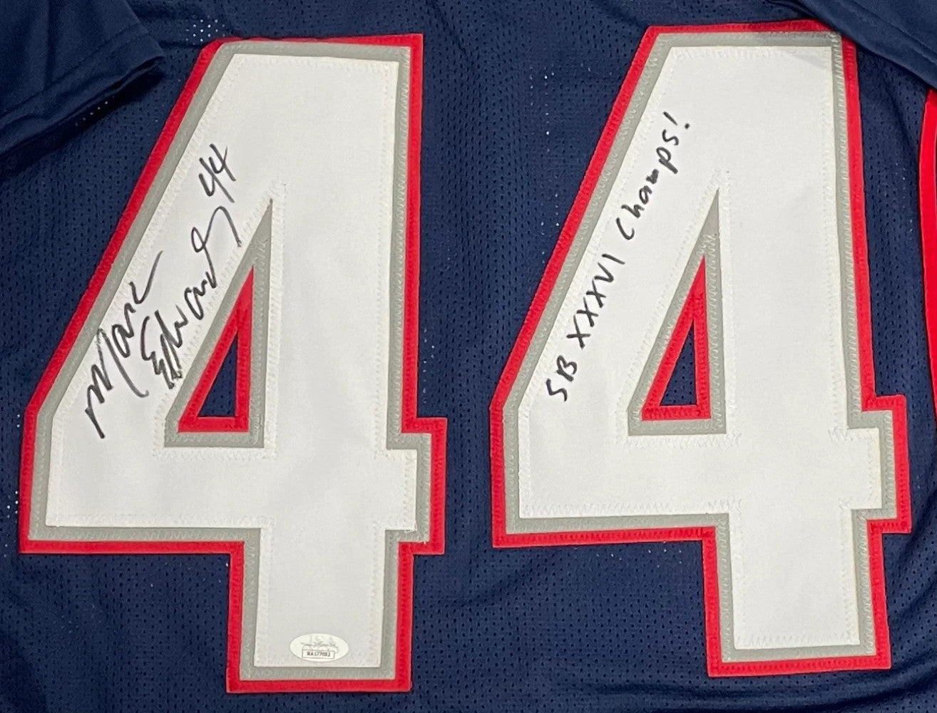 Marc Edwards "Sbxxxvi Champs!" Autographed New England Patriots Custom Jersey (J
