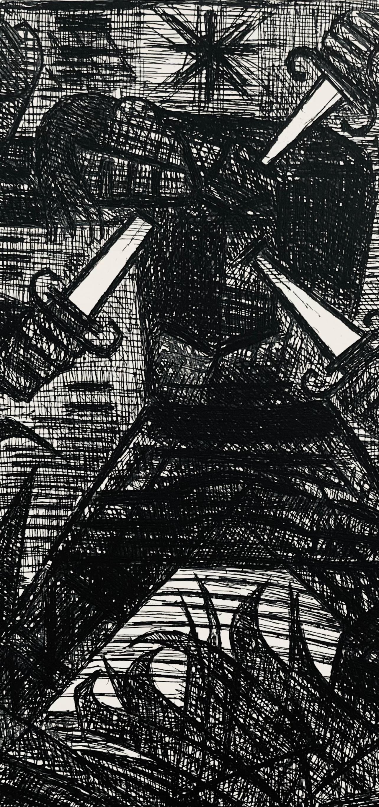 Etching on vlin de Rives paper. Unsigned and unnumbered, as issued. Paper Size: 16 x 12 inches. Excellent condition. Notes: From the folio, Shakespeare, Macbeth, Eaux-fortes de Gromaire, 1958. Published by Triade, diteur, Paris; printed by L'Imprimerie nationale, Paris, September 30, 1958. Excerpted from the folio (translated from French), The present edition of Macbeth of Shakespeare according to the translation of Franois-Victor Hugo is illustrated with twenty original eaux-fortes engraved by Marcel Gromaire. The draw of these etchings was carried out by Raymond Haasen; the coppers were scratched after drawing. The text was composed in Romain du Roi body, twenty-four engraved by Grandjean au XVII Sicle sur l'ordre de Louis XIV. The compositions and impressions were executed under the direction of Georges Arnoult. The draw was completed on the presses of the L'Imprimerie nationale on the Thirtieth, September, One Thousand Nine Hundred and Fifty-Eight, Daniel Gibelin being director. It was drawn from this work CLXXX examples on Vlin de Rives, numbered from I to CLXXX, the first LX with a suite on Verg de Montval, and XX examples, excluding trade, reserved for collaborators, numbered from I to XX. All [colophons] are signed by the artist. In addition, sixty albums were drawn with the continuation of the twenty etchings of the bookall the plates signed by the artist.