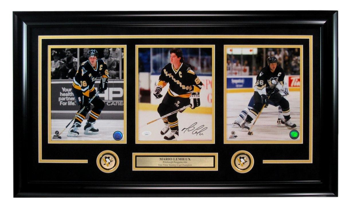 Mario Lemieux Autographed Photo Collage Pittsburgh Penguins Framed Jsa 186284