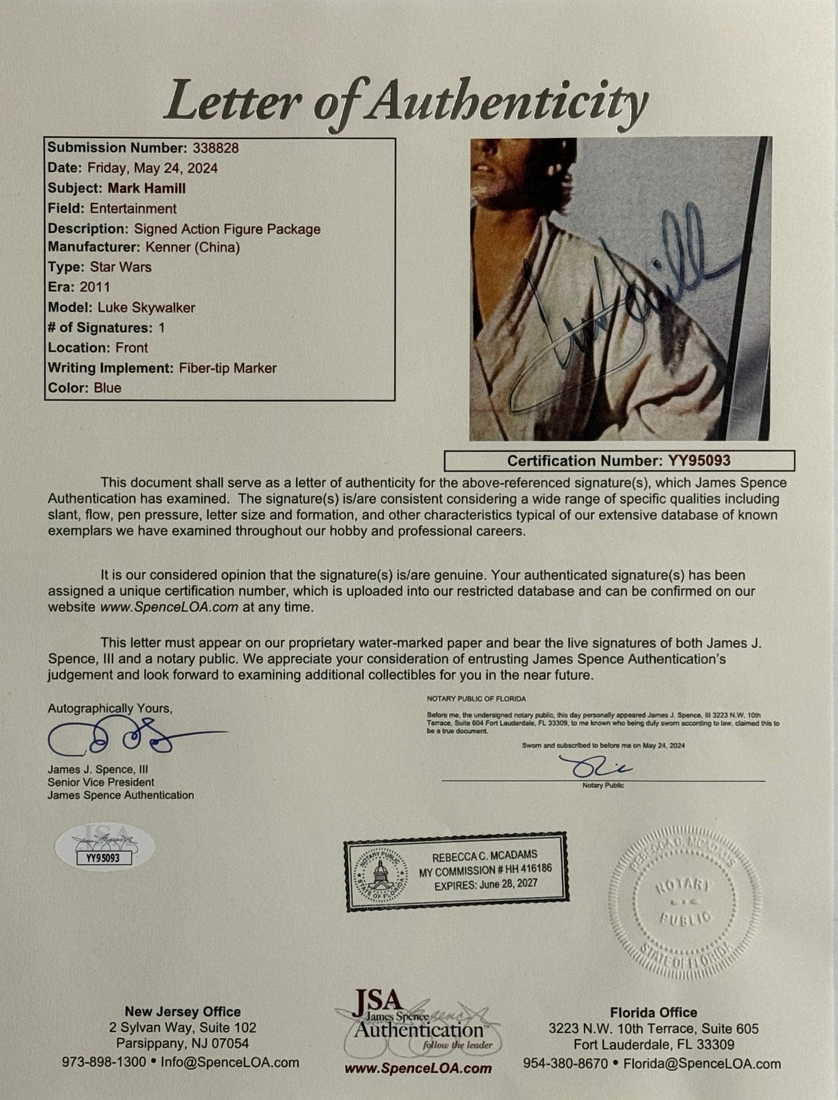 Mark Hamill Signed Princess Luke Skywalker Star Wars Kenner Action Figure Sealed