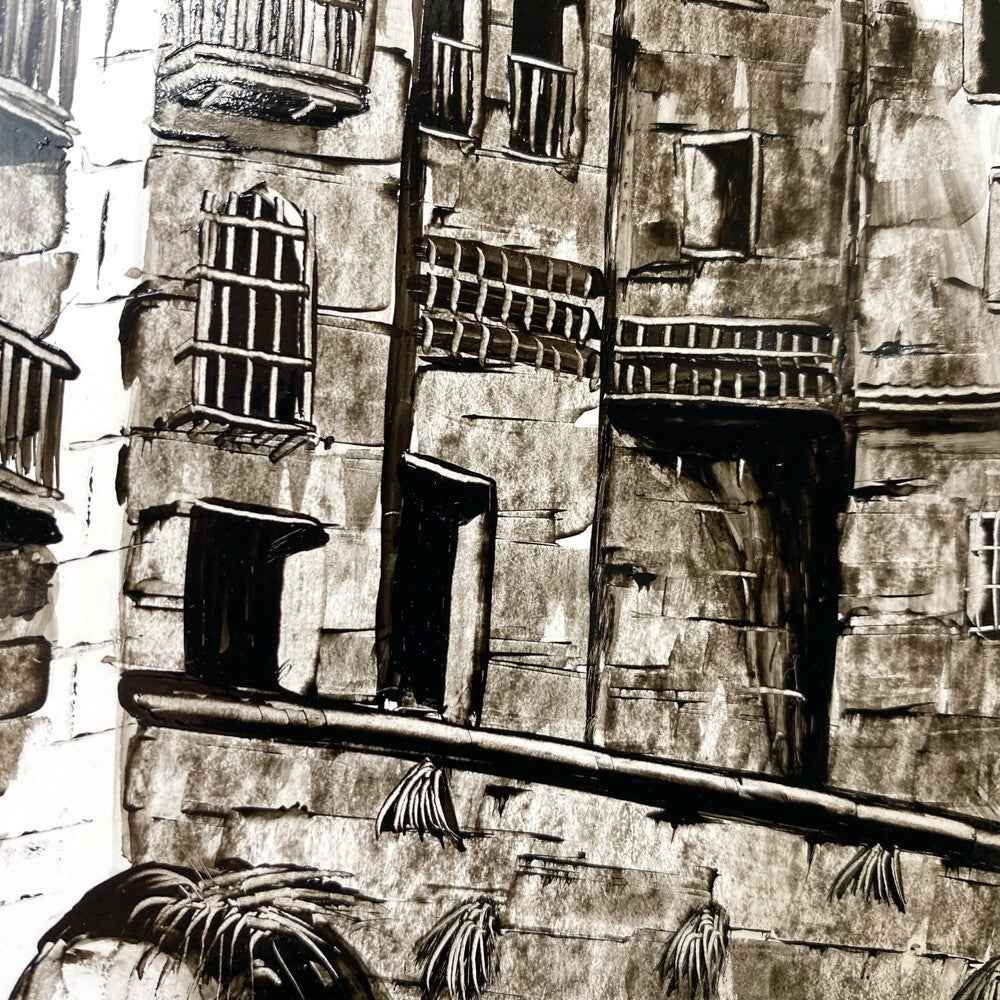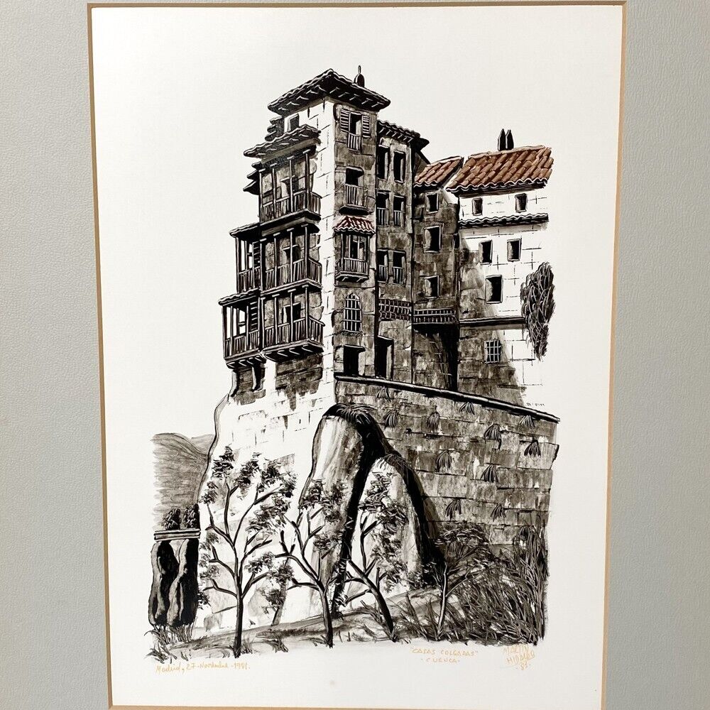 Martin Hidalgo (Spain) - Madrid Original Painting Gouache On Paper Signed Framed