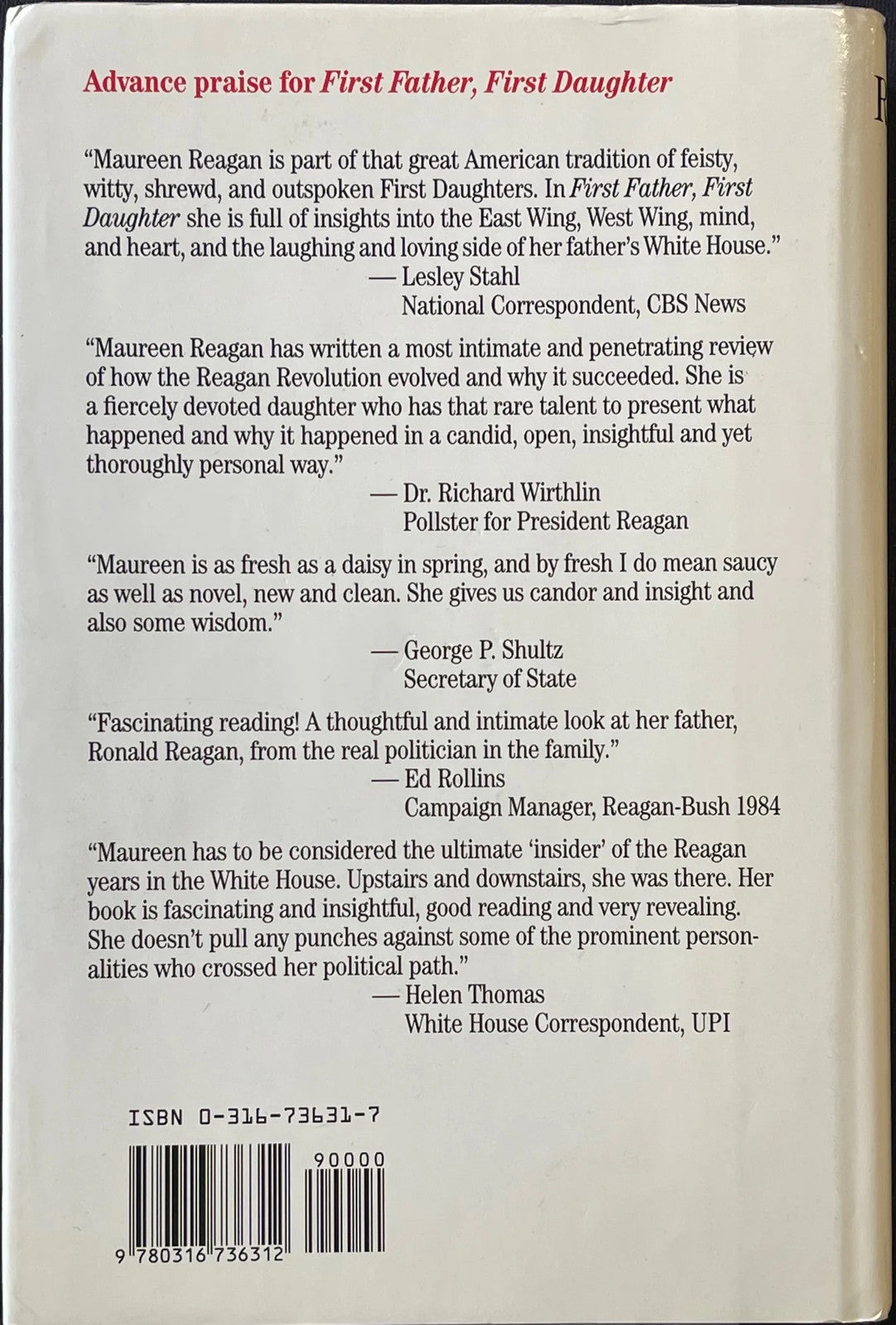 Maureen Reagan First Father First Daughter A Memoir Autographed Book