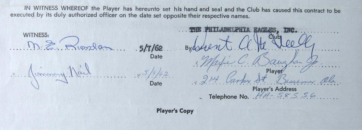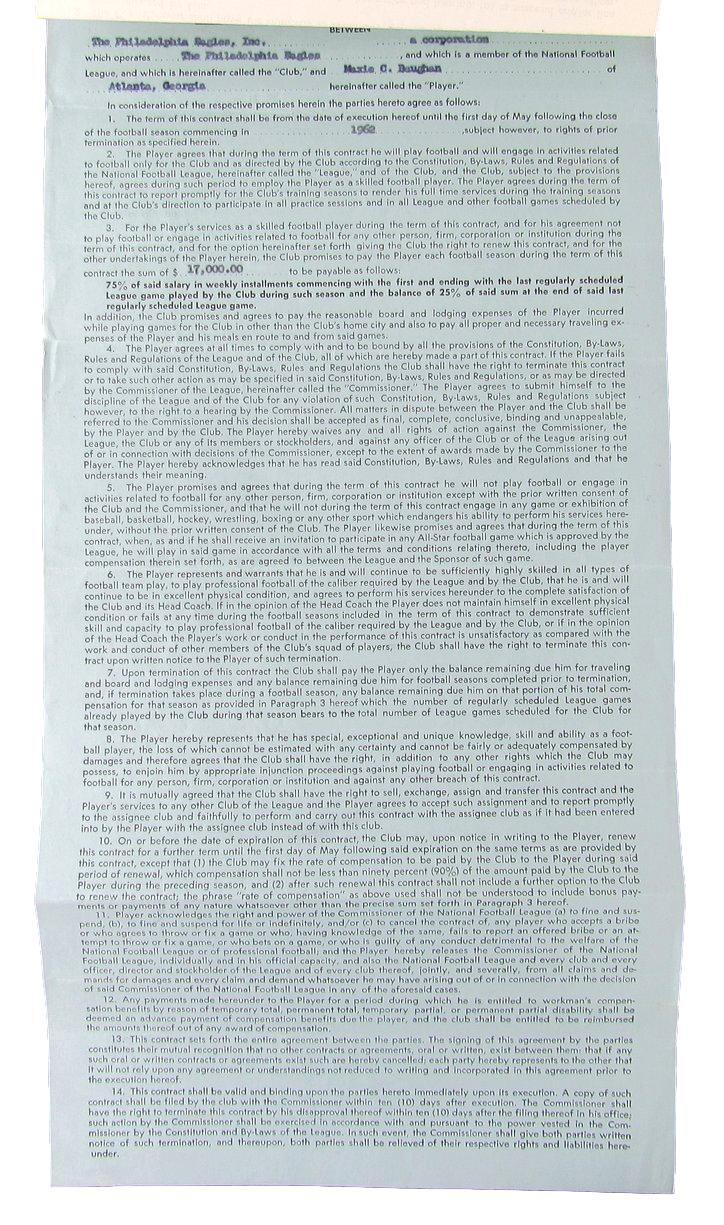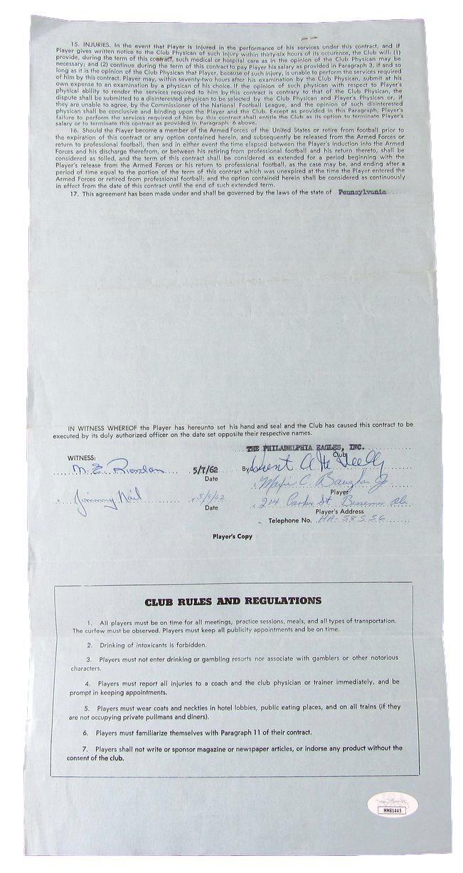 Maxie Baughan Philadelphia Eagles Signed/Autographed 1962 Contract Jsa 160870