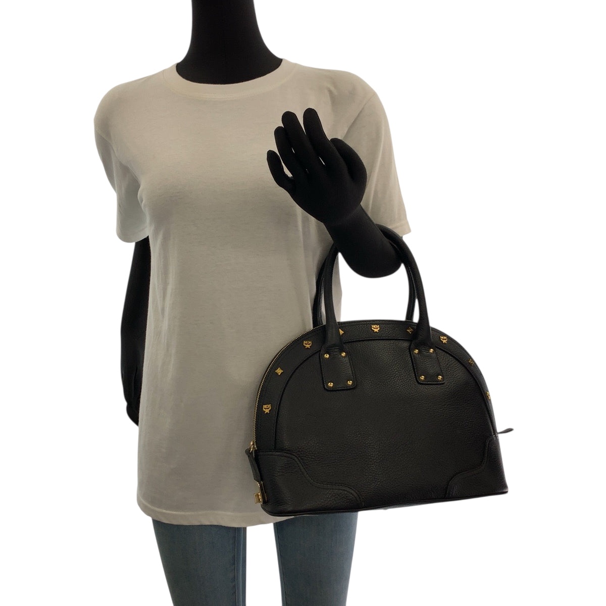 Mcm Handbag Leather Black Goldmetal Logo