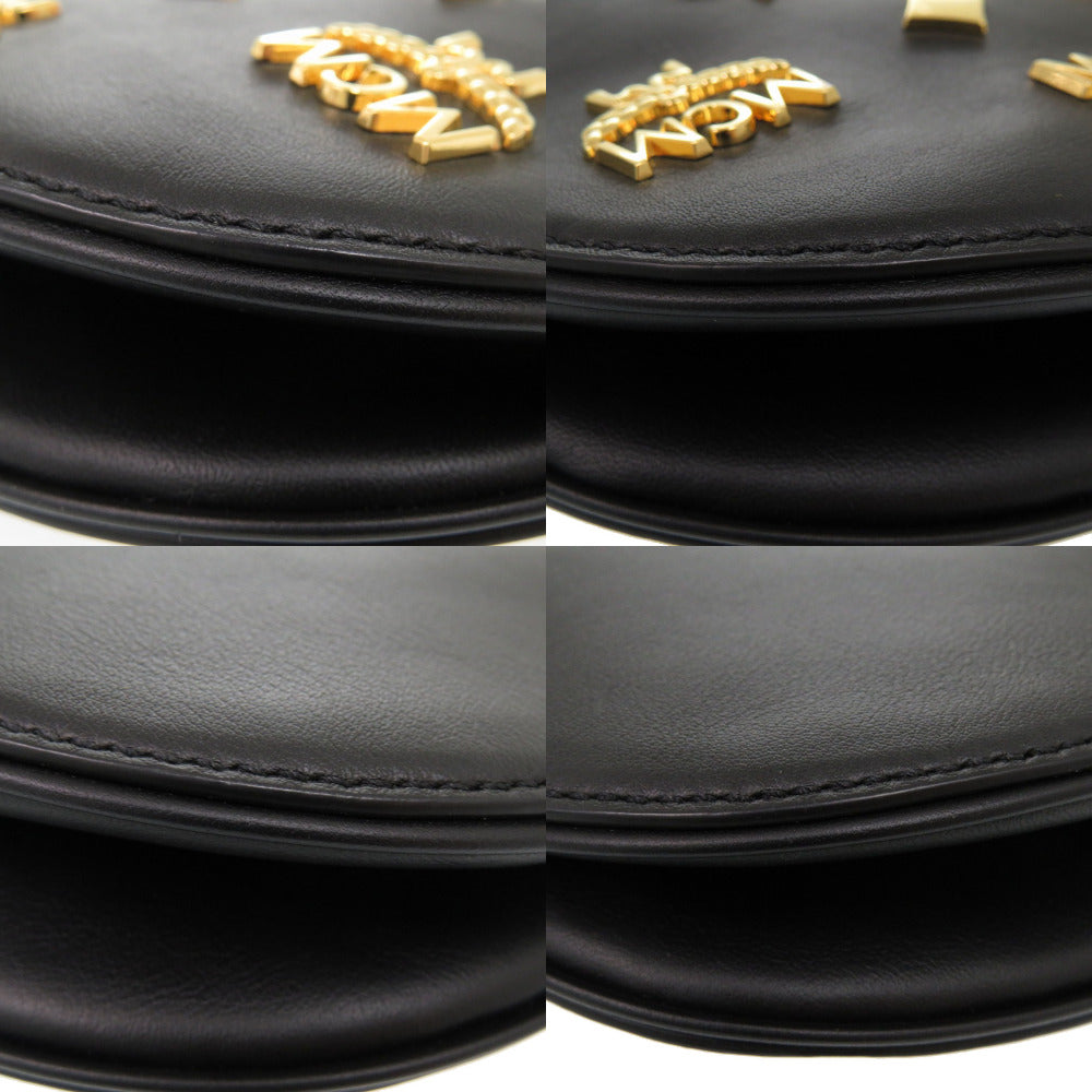 Mcm Shoulder Bag Mwhcata02Bk001 Calfskin Black Logo Aren Women