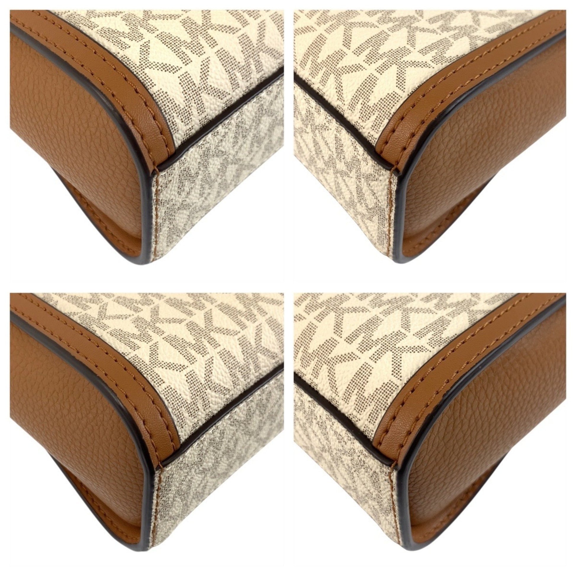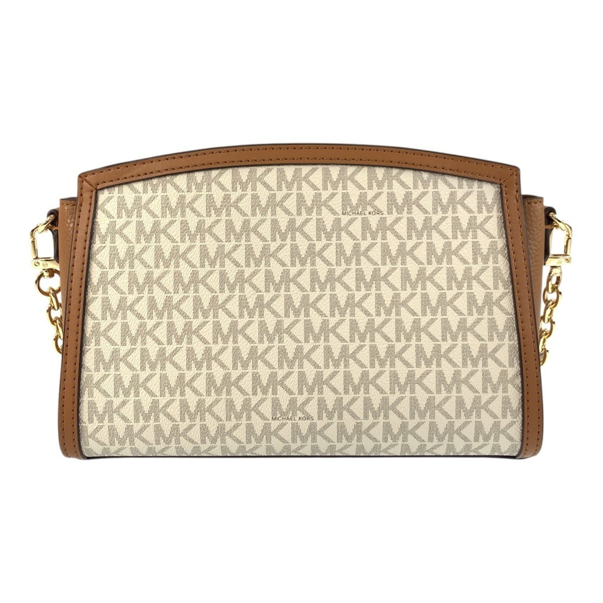 Michael Kors Mk Signature White Brown Gold Hardware Leather 00278 Shoulder Bag Pochette