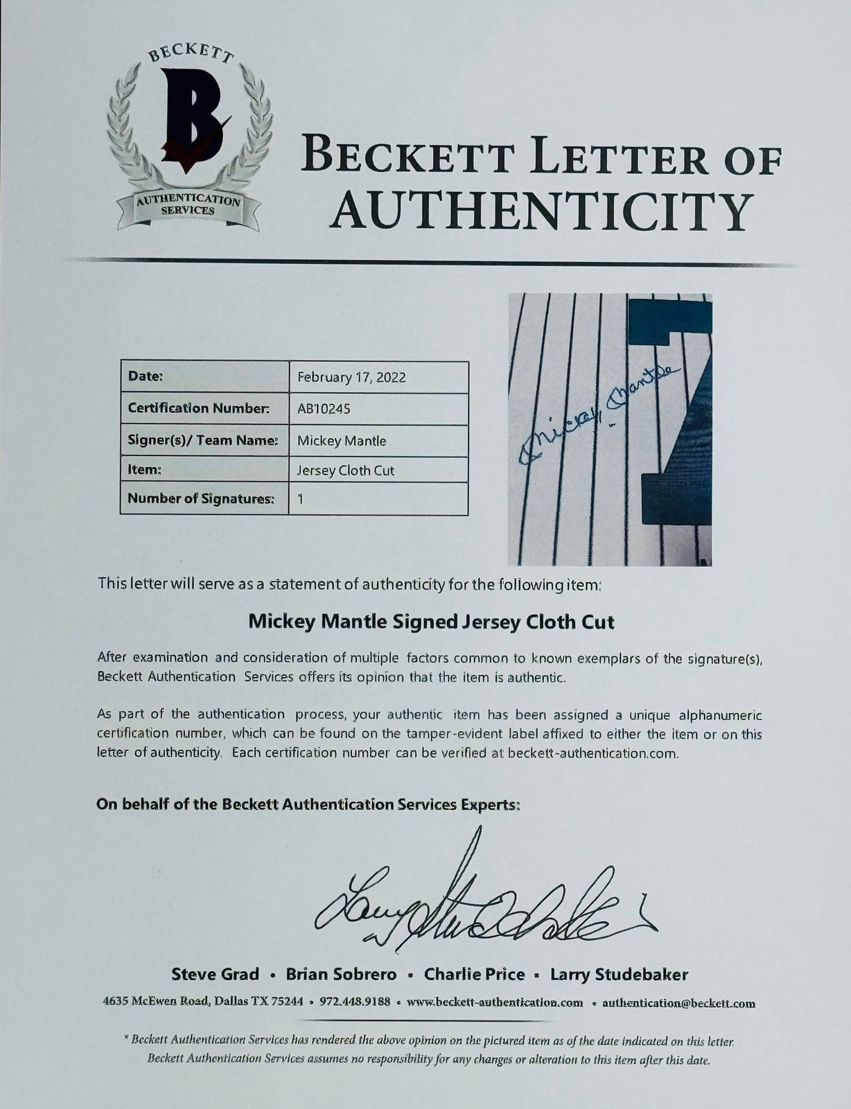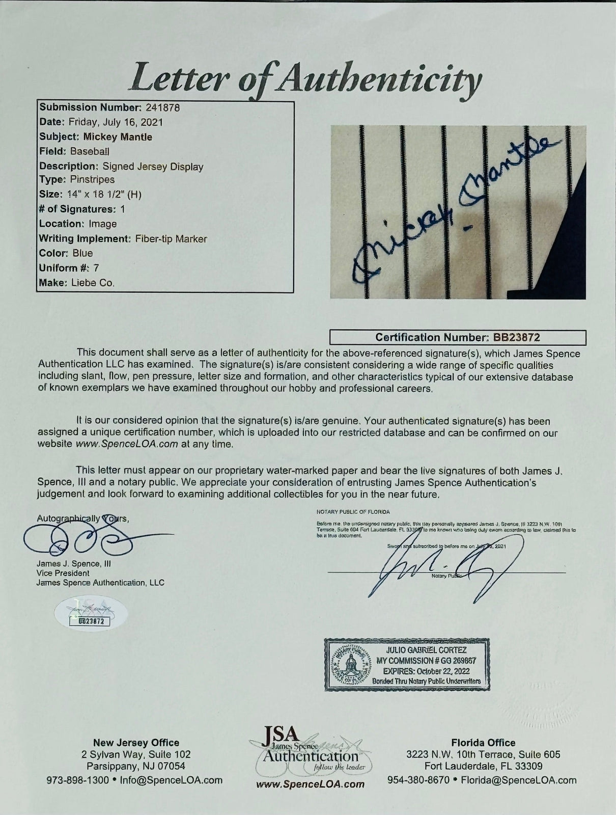 Mickey Mantle Autographed N.Y. Yankees Jersey Swatch Framed (Beckett&Jsa)