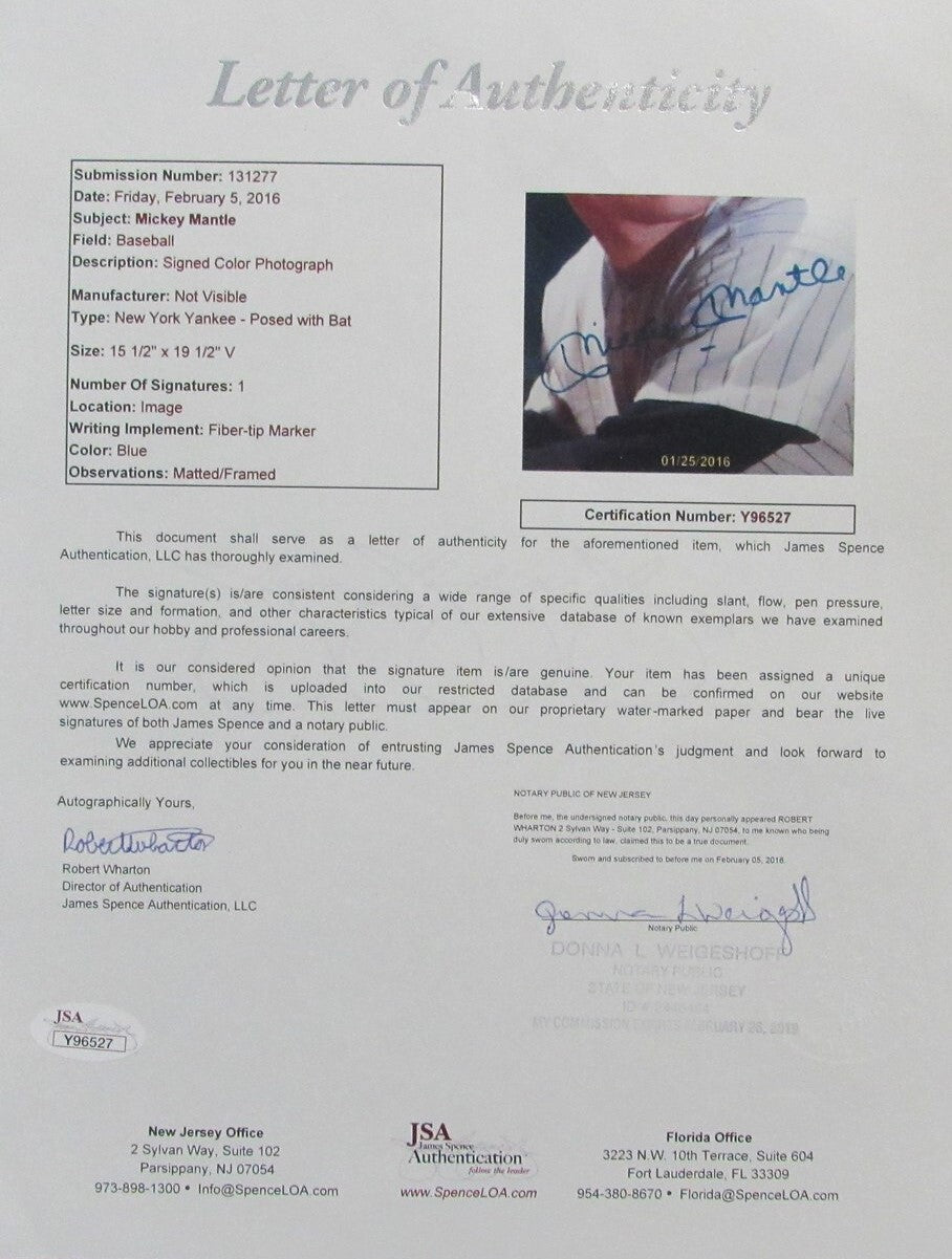 Mickey Mantle Hof Autographed 16X20 Photo New York Yankees Framed Jsa 182846