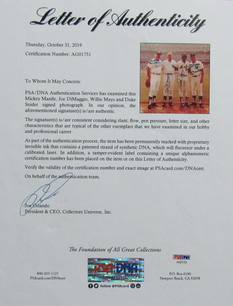 Mickey Mantle/Joe Dimaggio/Willie Mays/Snider Signed 11X14 Photo Psa/Dna 184783