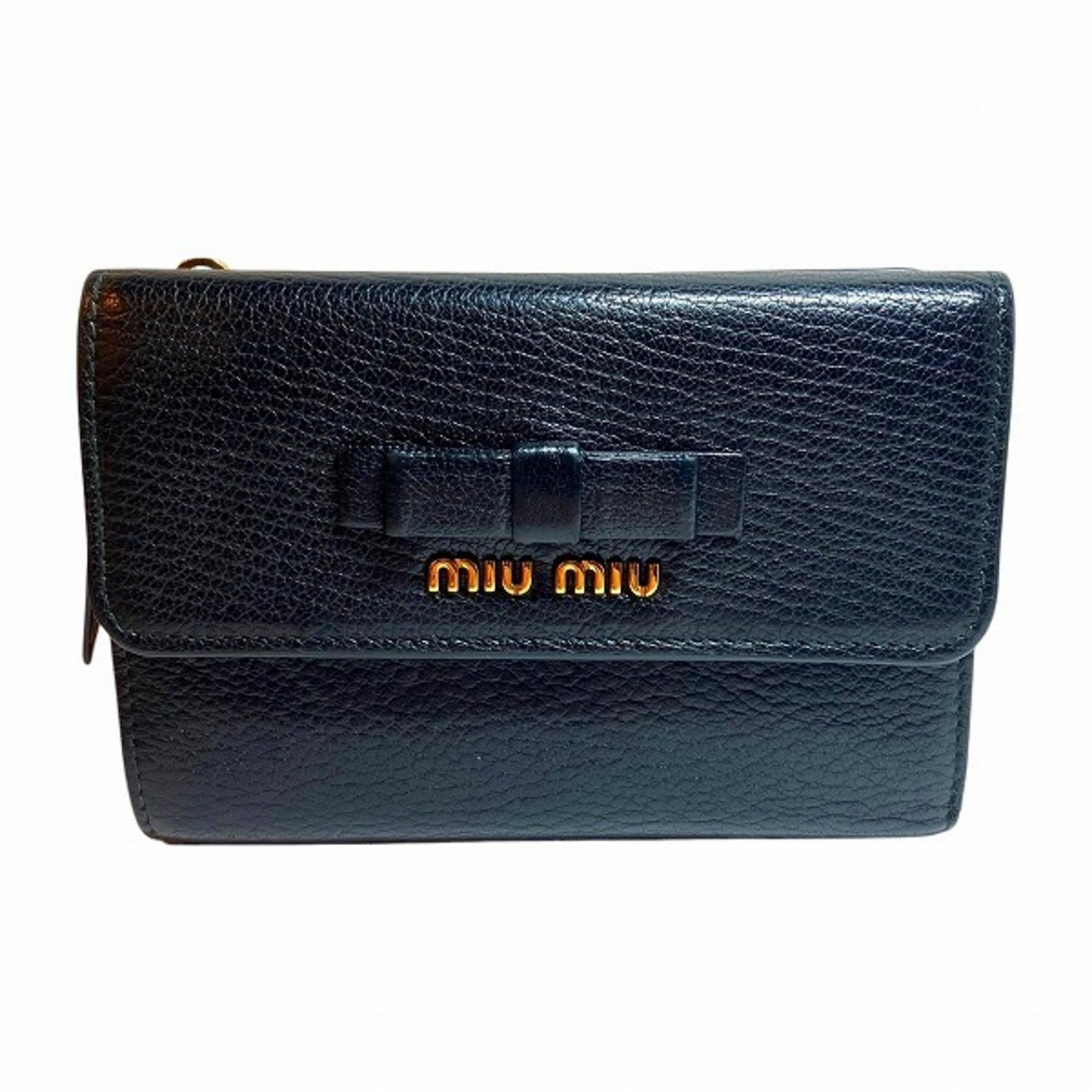 Miu Miu Miu 5Ml014 Black Ribbon Tri-Fold Wallet