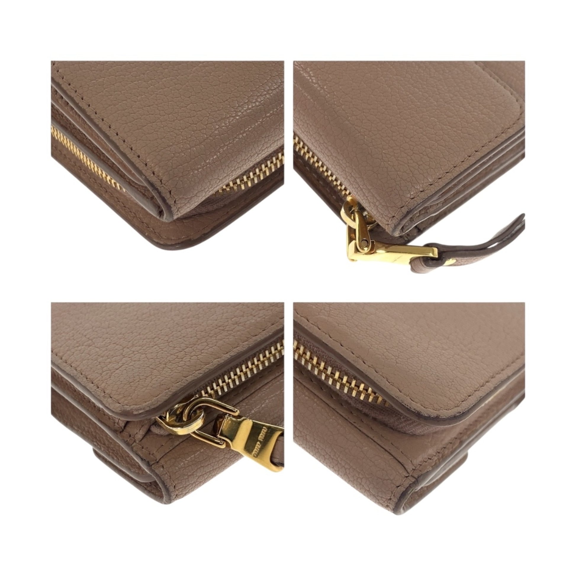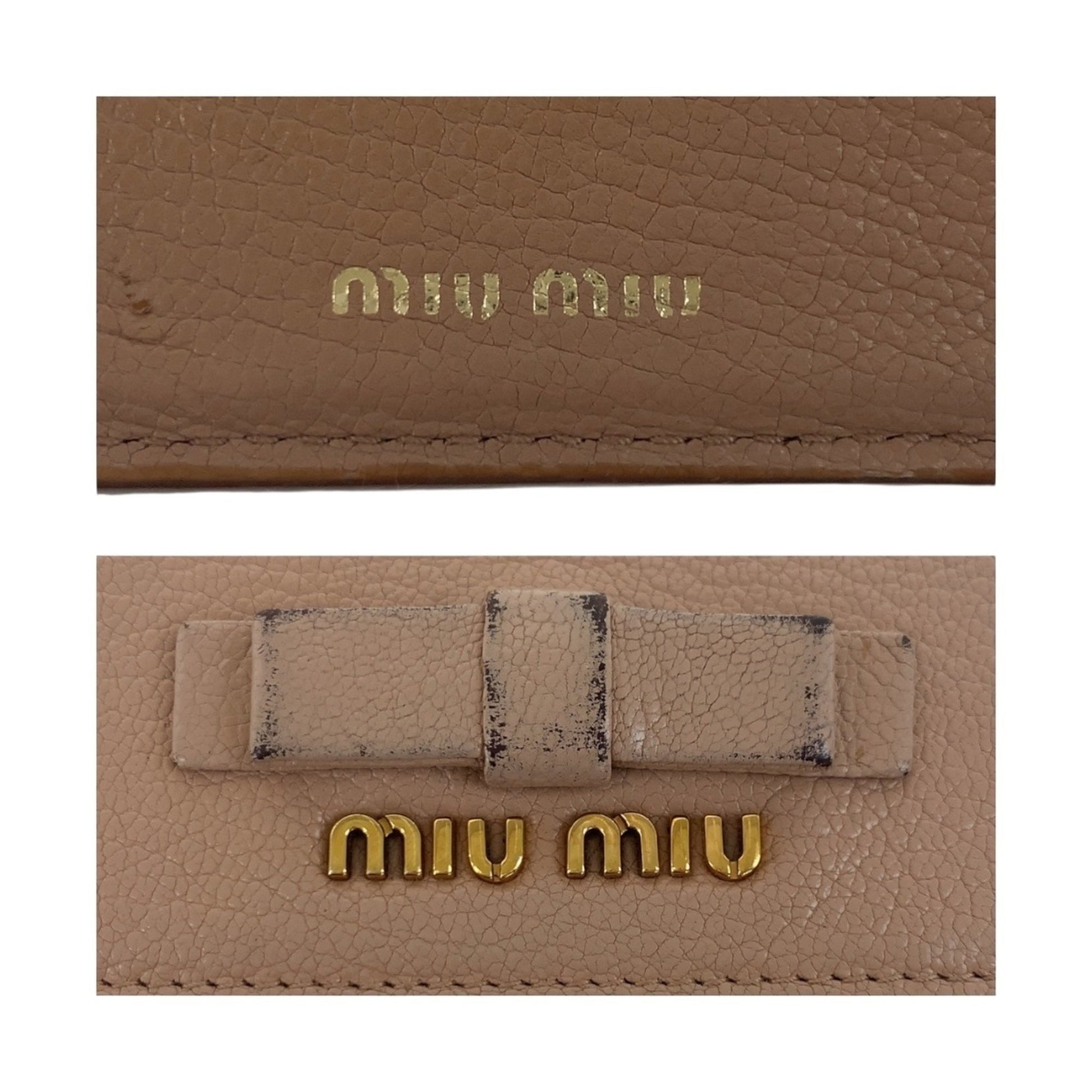 Miu Miu Miu Ribbon Pink Gold Hardware Leather Folding Wallet Compact
