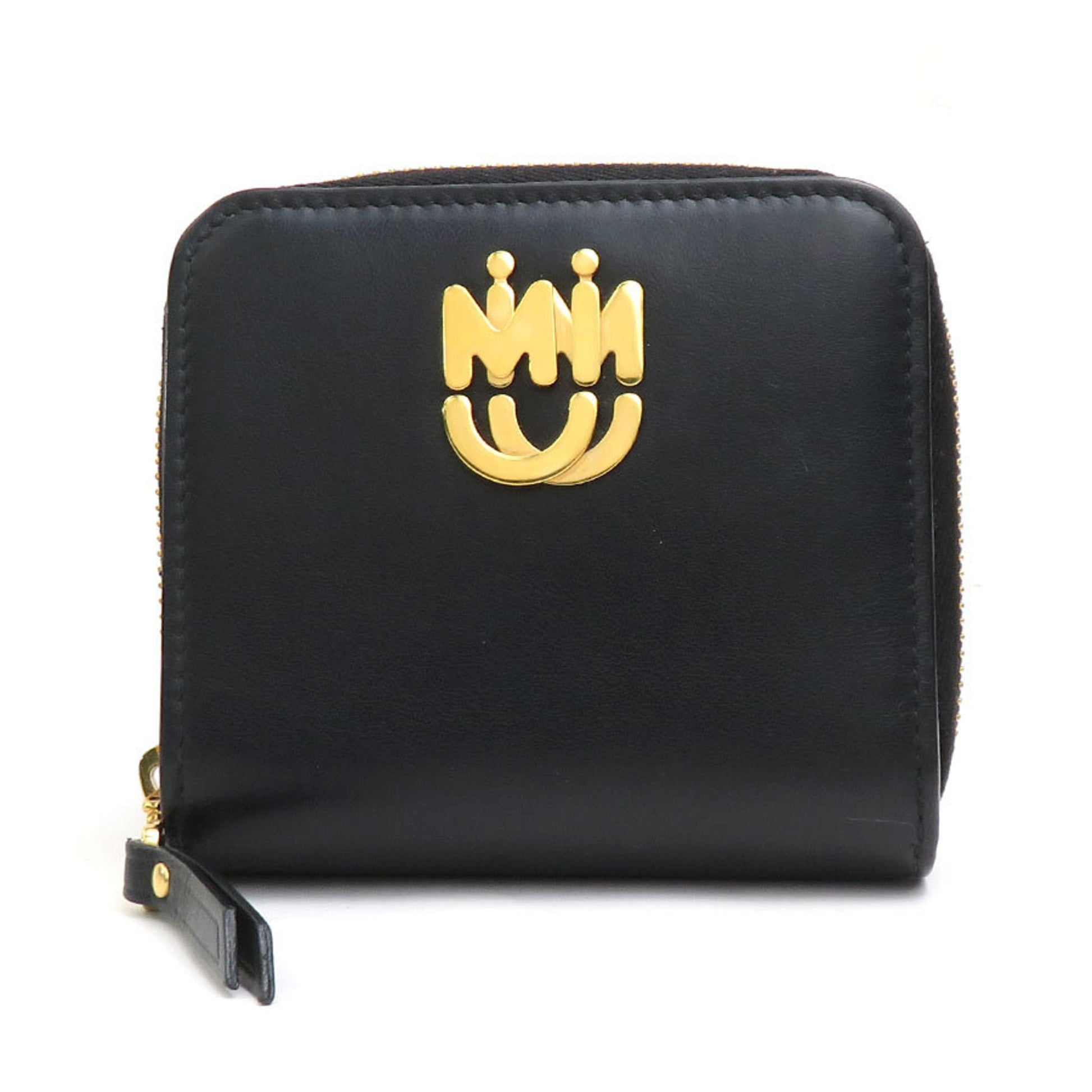 Miu Miumiu Bi-Fold Wallet Leather Black