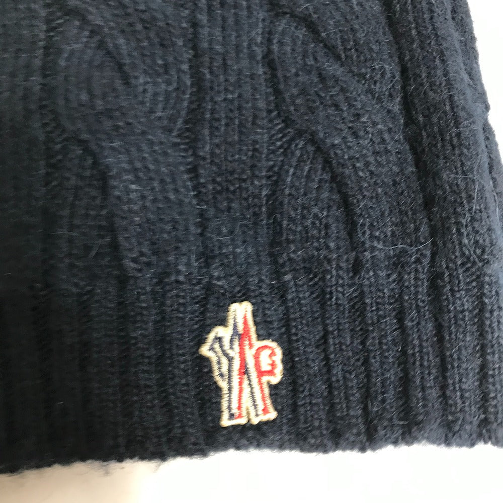 Moncler Knit Hat Wool , Acetate , Alpaca Navy Pom Pom Logo Women