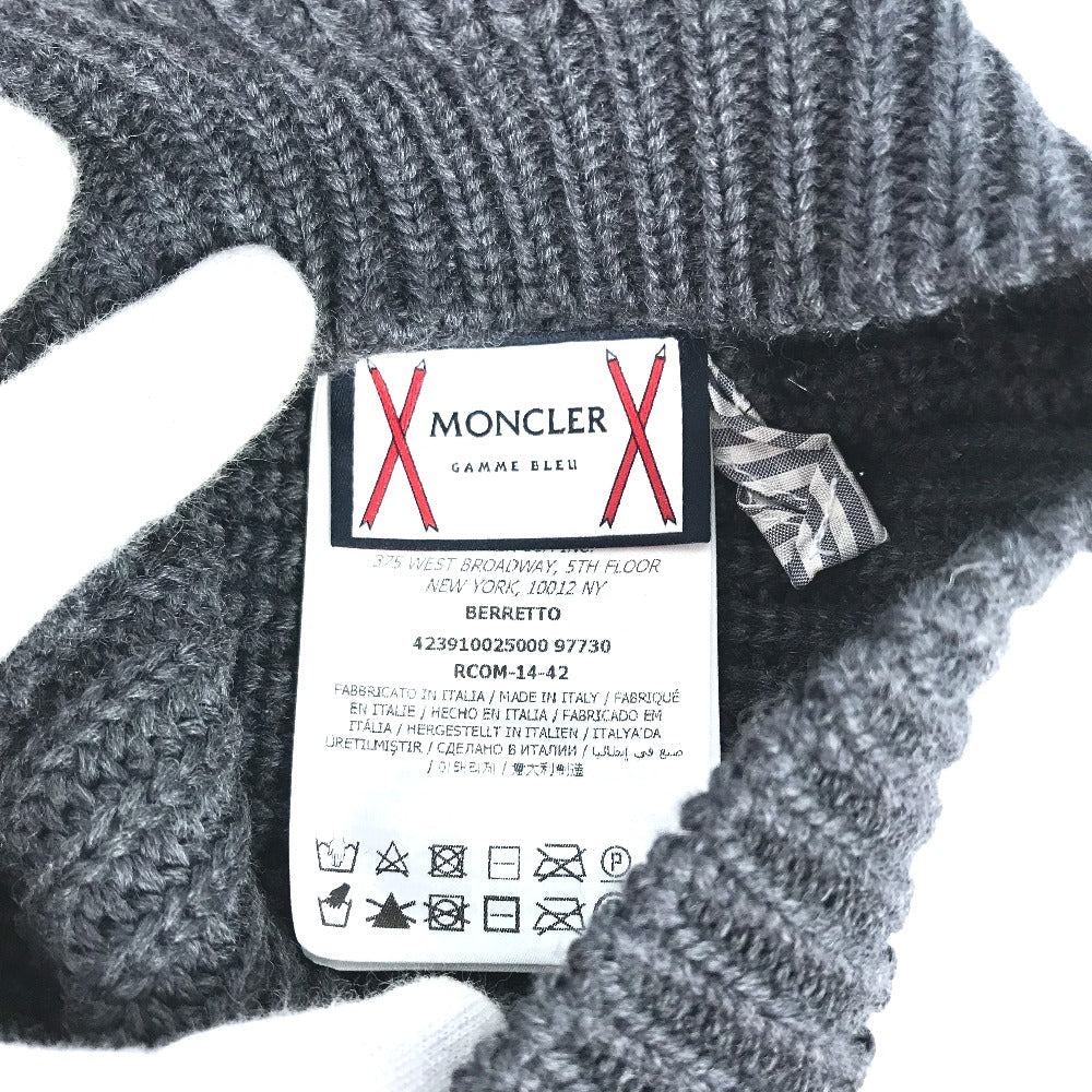 Moncler Knit Hat Wool Gray Gamme Bleu Logo Mens