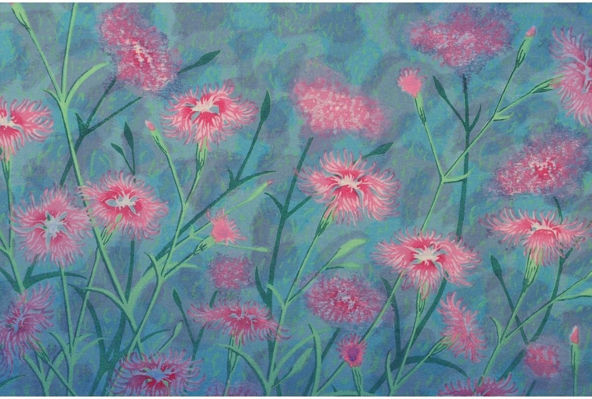 Munenori Makino Nadeshiko No Hana 1989 Japanese Woodblock Print Ap Hand-Signed