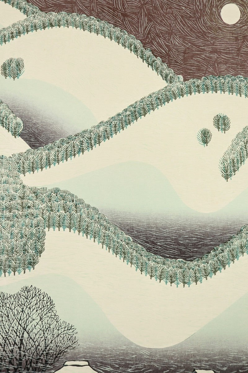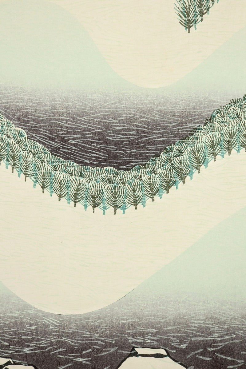 Munenori Makino Woodblock Print "Snowy Mountain Light" 1981 A.P Signed Japan