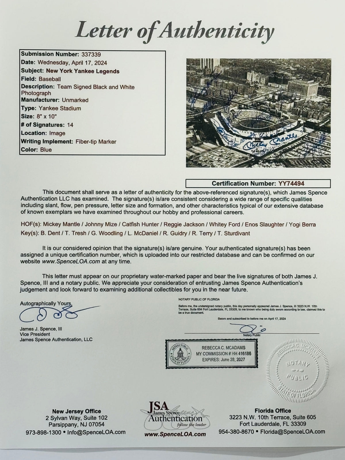 New York Yankee Greats Signed Baseball 8X10 Photo