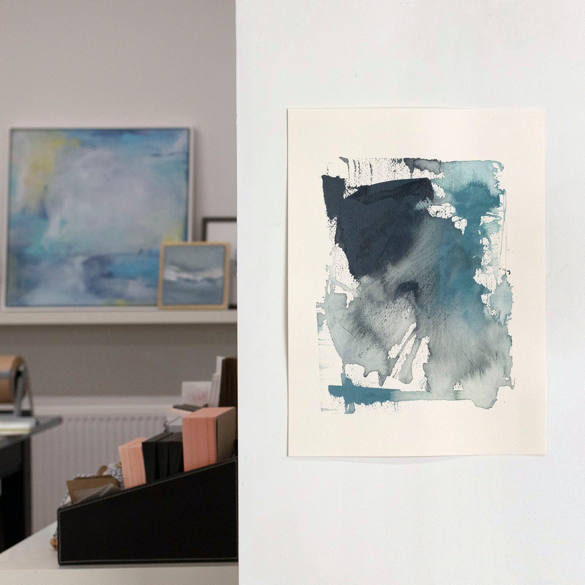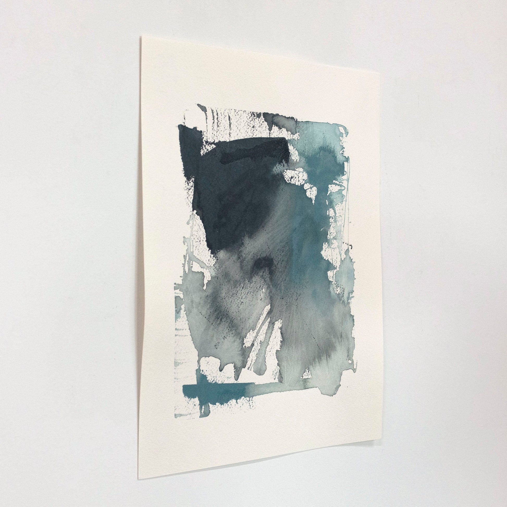 This original painting is created witha deep charcoal and tealthatwashout to compose the composition of the work . Itsc reated on140 lb Strathmore warm white acid-free paperand is signed on the back. It can be signed on the lower right corner if requested.