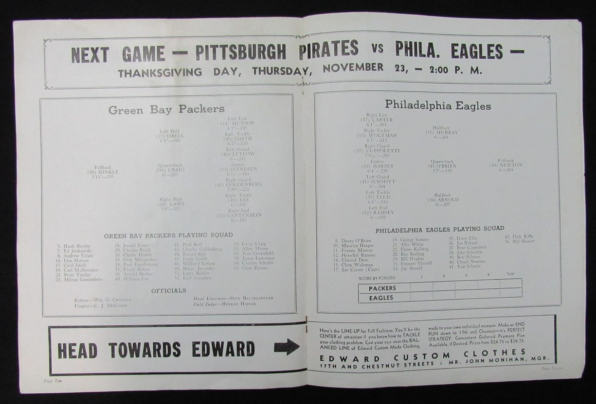 November 12, 1939 Philadelphia Eagles Vs. Packers