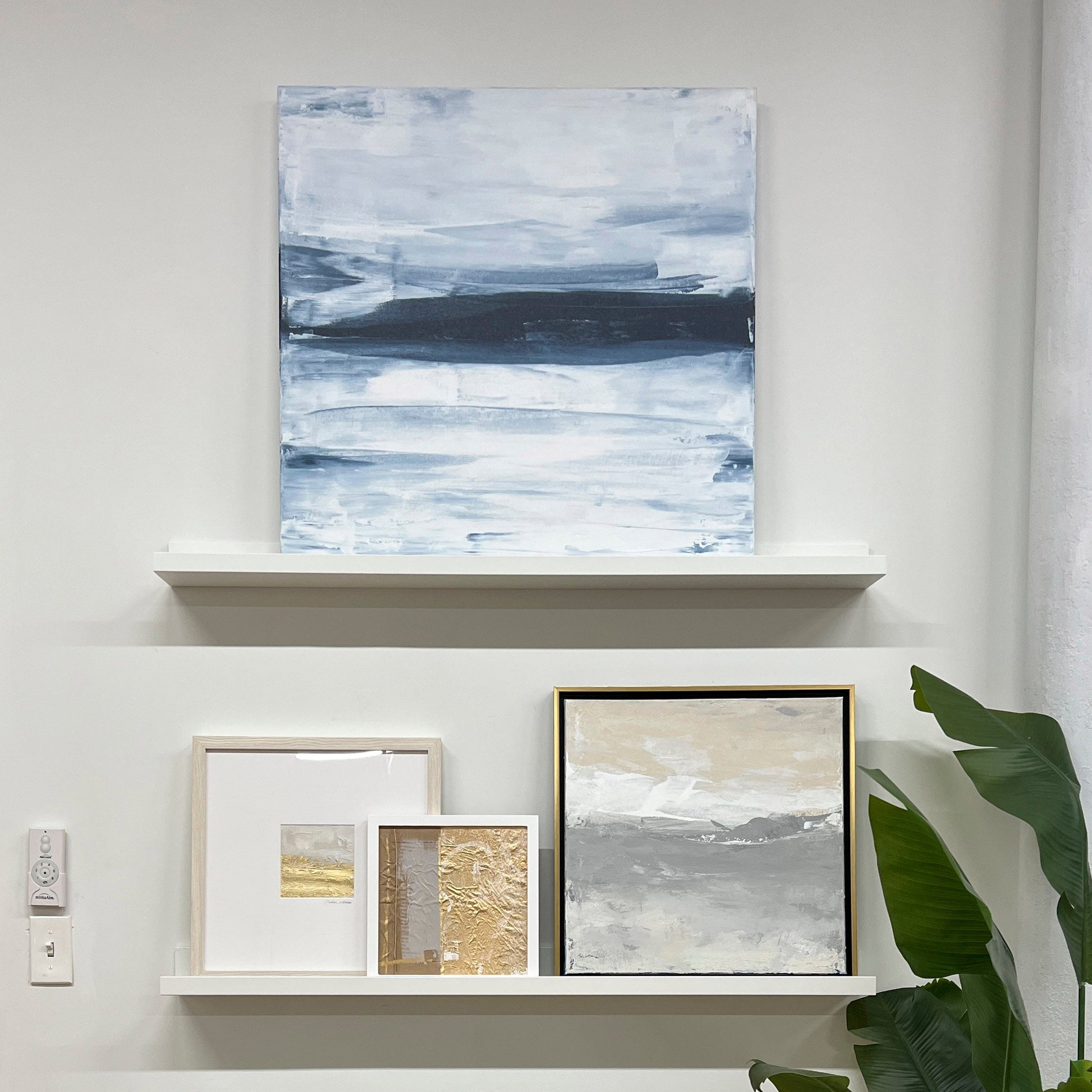 Capturing a coastal visual that fascinates, overwhelms and inspires. Tones of deep navy (almost black)mingle withwhitecreating soft middle toned blues to form this abstract coastal painting.