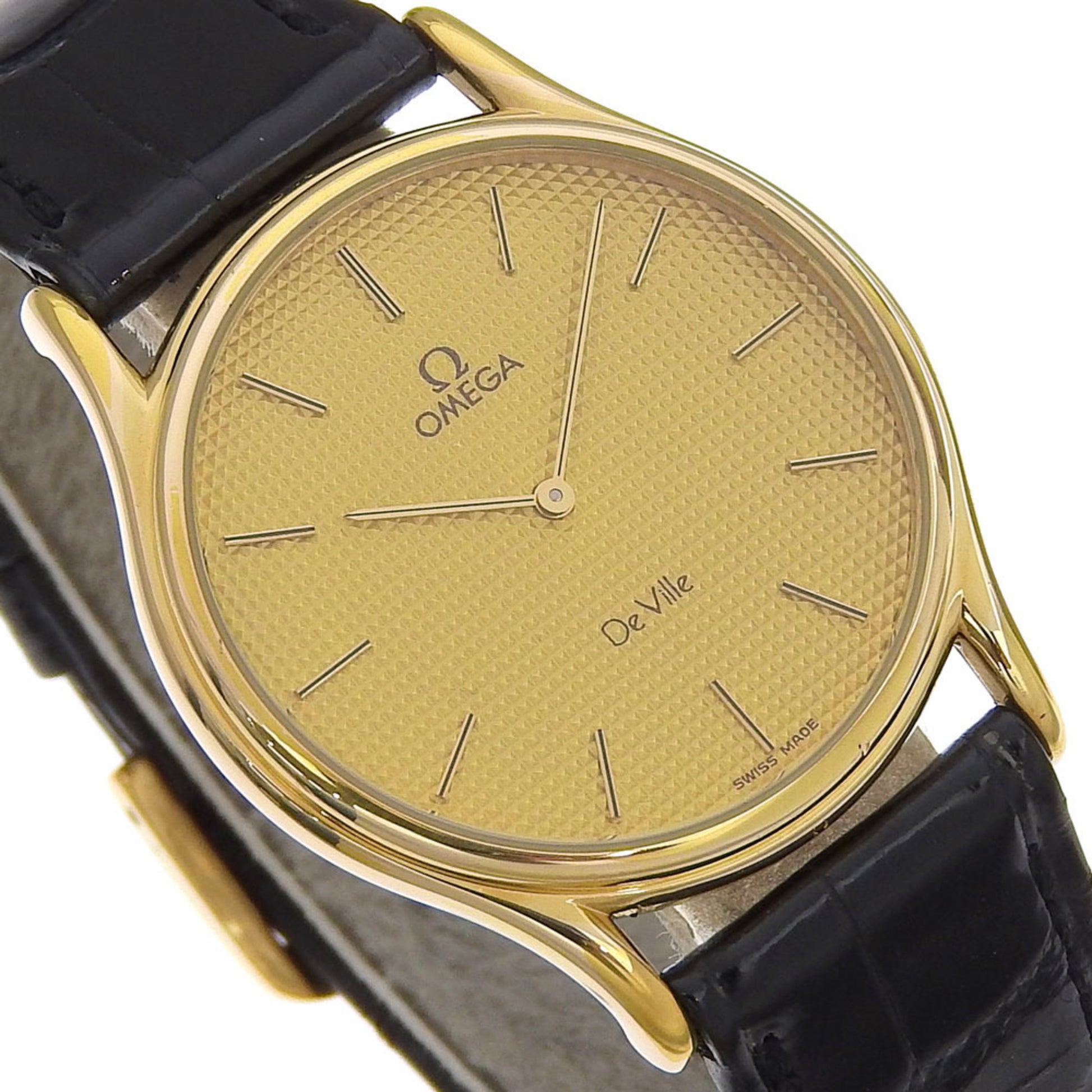 Omega De Ville Watch Cal.1365 Gold-Plated X Embossed Leather Quartz Analog Display Gold Dial