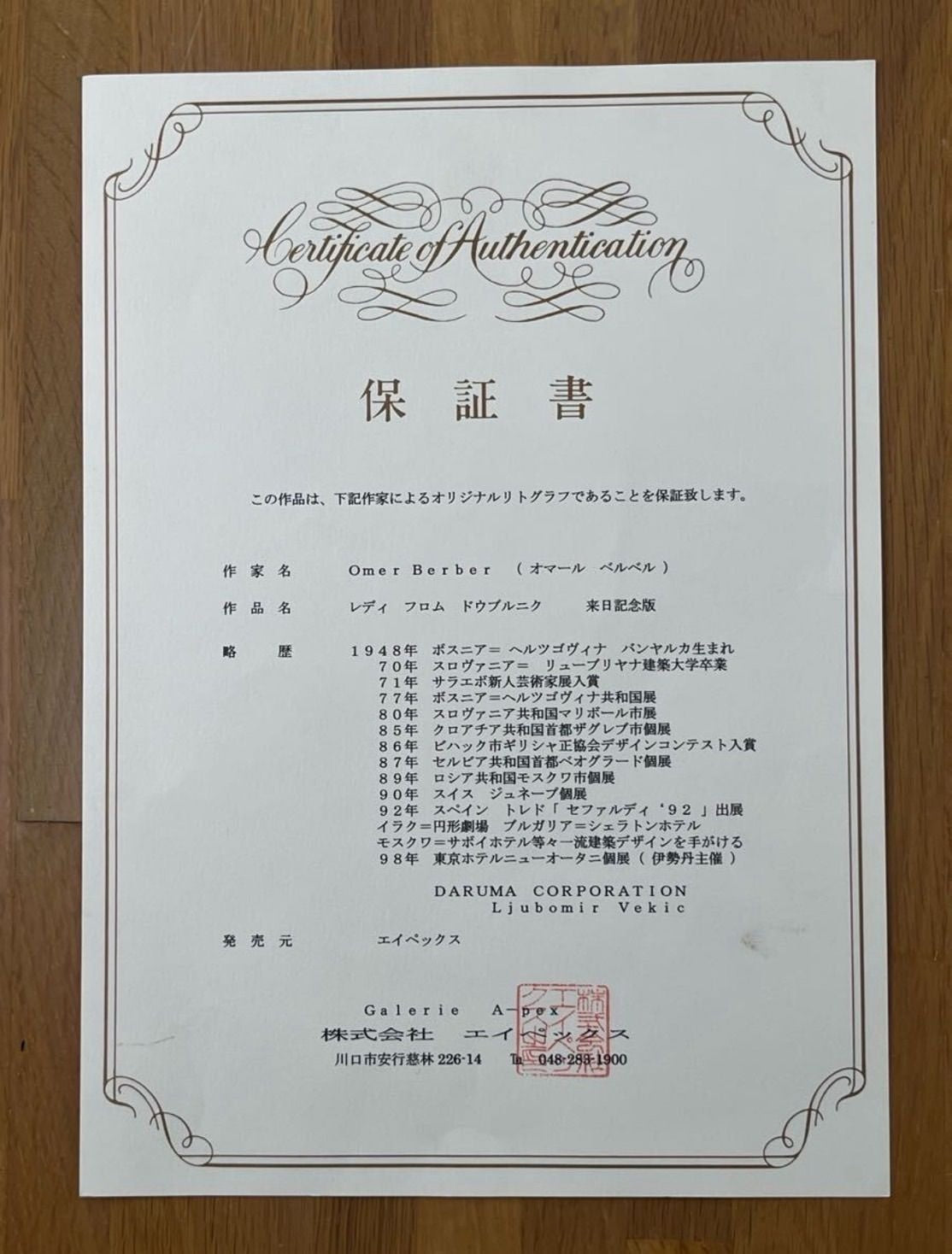 Certificate Of Authenticity (Coa): No