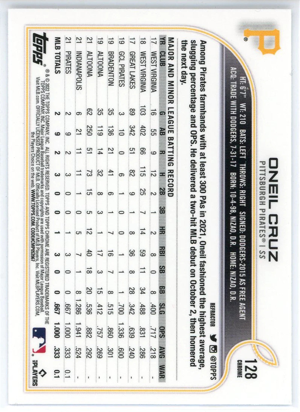 Oneil Cruz 2022 Topps Chrome Rookie Card #128