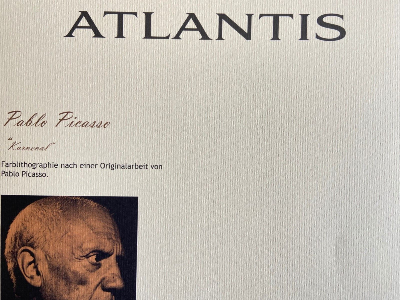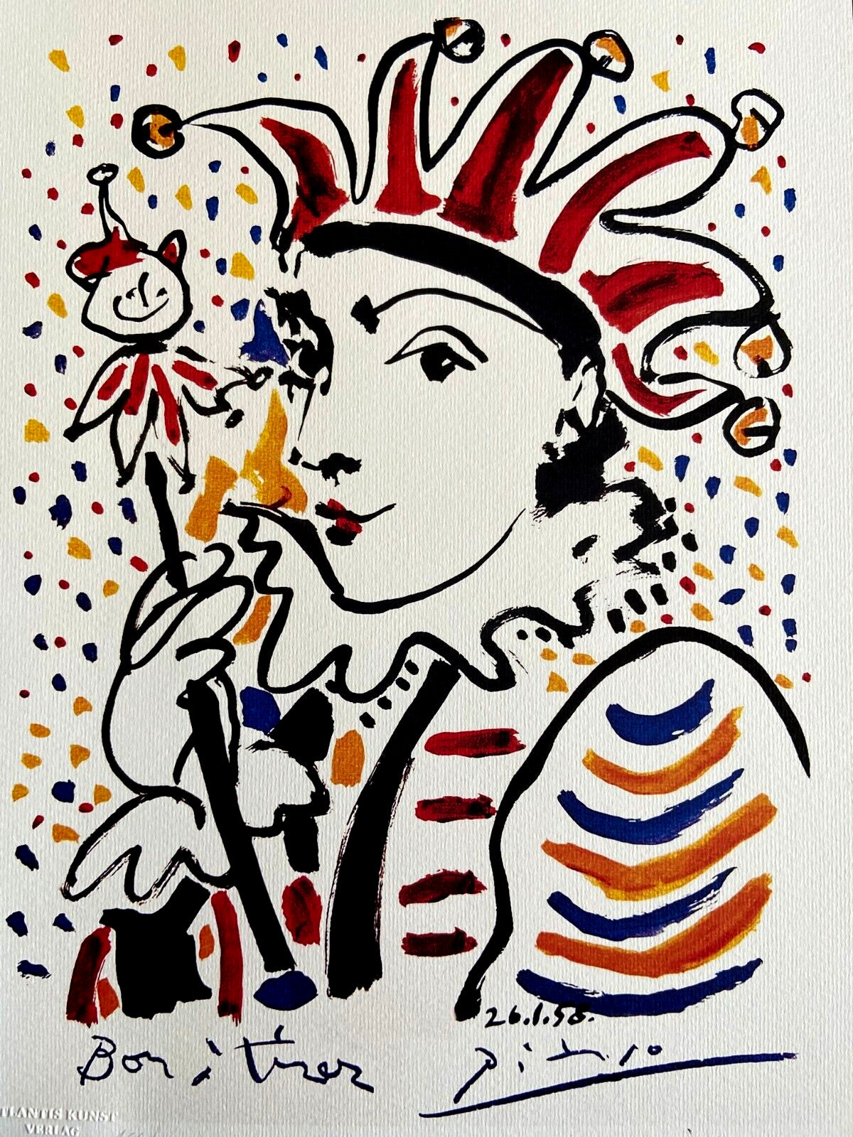 Pablo Picasso COA Signed In Pen Numbered In Pencil Crayon - Henri Matisse Pablo Picasso " Carnival " Full sheet printed chromolitography in 1978 In 180 specimens from Atlantis Verlag, Freiburg 32 x 45 cm Signature Pablo Picasso on the slab Dry and authentic stamp of the publishing house Atlantis Kunst Verlag Freiburg Pablo Picasso "Carnival" Full sheet printed chromolitography in 1978In 180 specimens from Atlantis Verlag, Freiburg 32 x 45 cm Signature Pablo Picasso on the slab Dry and authentic stamp of the publishing house Atlantis Kunst Verlag Freiburg