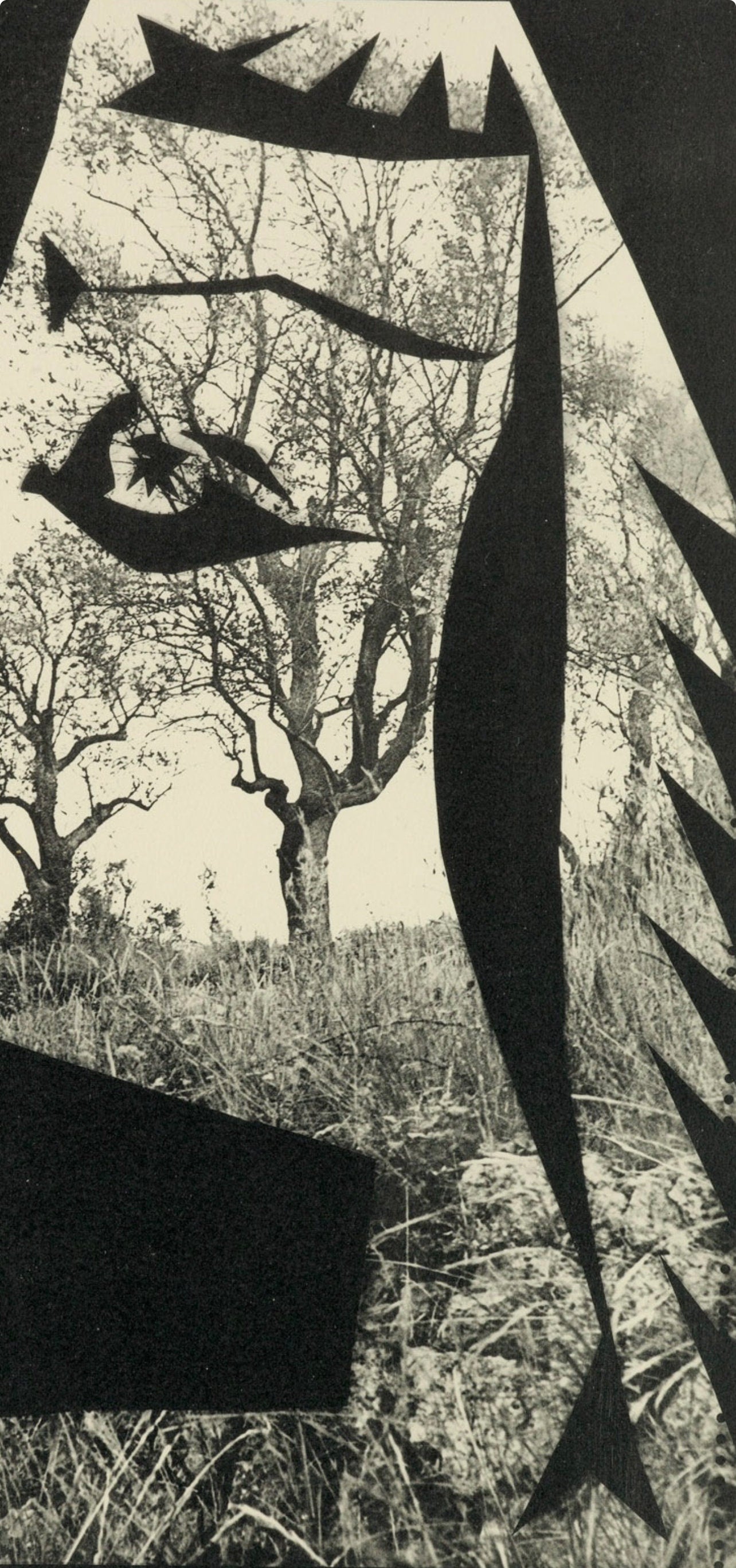 Phototype and stencil on vlin dArches paper. Unsigned and unnumbered, as issued. Paper Size: 15.625 x 11.75 inches. Excellent condition. Notes: From the folio, Diurnes Dcoupages et Photographies, 1962. Published by Galerie Berggruen et Cie, Paris; renderings and plates prepared at Atelier de Daniel Jacomet, Paris; printed by l'Imprimerie Union, Paris, January 29, 1962. Excerpted from the folio (translated from French), This publication made with the help of Lionel Prejger was drawn at M examples, the first C of which are accompanied by an original engraving by Pablo Picasso. [The colophons are] numbered and signed by the artist. This engraving printed on the presses of Arnra in Vallauris is presented under special embed. Printing was finished on January 29, 1962 on the presses of the l'Imprimerie Union in Paris and in Daniel Jacomet's workshops for phototypies and stencils. Excerpted from a Gagosian Gallery article pertaining to this artistic venture between Pablo Picasso and Andr Villers, Manifest throughout the artistic practice of Andr Villers is a distinctive experiential nature lent not only by his experimentation with an array of physical and formal elements, but by his unrelenting fascination with the play of shadows, transparencies, and sculptural dimension in photography. Following the hardships of World War II, Villers contracted bone tuberculosis at the age of seventeen. He was then moved to the Centro Hlio-Marin sanatorium in southeastern France, where he was bedridden for five years. It was during his recovery there that Villers first took up a camera, experimenting with photography as early as 1952. He first met Pablo Picasso by chance on a Vallauris street in 1953, where the artist was working in a ceramics studio. This serendipitous encounter marked the beginning of a profound friendship and creative dialogue which would ensue in the years following. The publication of the book Diurnes in 1962, with a preface by poet Jacques Prvert, was the culmination of their exceptional decade of joint investigation: thirty plates were selected from among some seven hundred photograms of masks, animals, and group figure studies made between 1954 and 1961. From this fruitful collaboration emerged an unprecedented synthesis of photography and painting, one that would transcend the boundaries of each respective medium and break new ground for a Cubist genre in photography.