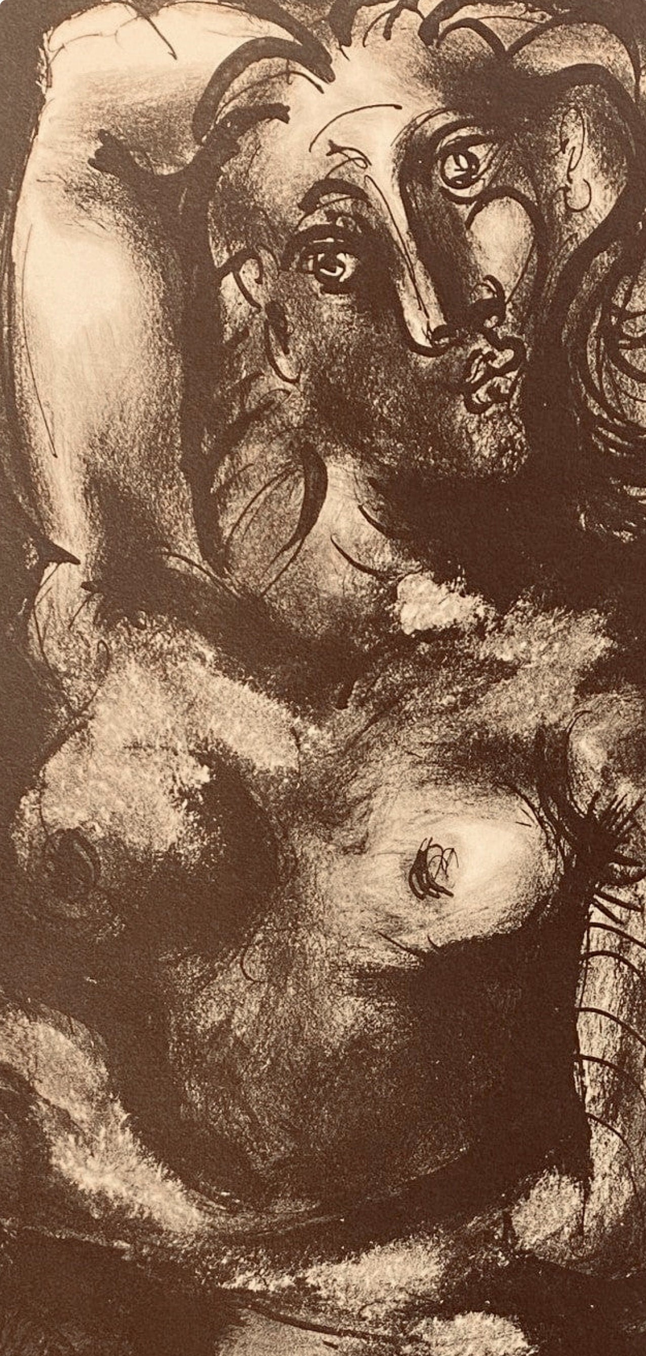Lithograph on vlin paper. Inscription: Unsigned and unnumbered. Paper Size: 16.54 x 11.81 inches. Excellent condition. Notes: From the volume, Carnet de dessins de Picasso: reproduits au format de l'original, 1948; published by ditions Cahiers d'Art, Paris, and Christian Zervos, Paris; printed by ditions Cahiers dArt, Paris, 1948. Quoted from ditions Cahiers d'Art, Edition limited to MCC examples. Full-page illustrations. Also known as Carnets de Royan. This series reproduces works made in Royan from 30/05/1940 to 22/08/1940. The end of the volume is composed of studies created in Paris and dated 19/02/1942 Picasso fled Paris in September 1939, because he fears bombing, and settles in Royan. From the beginning of 1940, he rented a workshop on the 3rd floor of the villa Les Voiliers which dominates the port. This notebook belongs to this period of work. Picasso finally returned to Paris in August 1940, Royan being forbidden to foreigners.